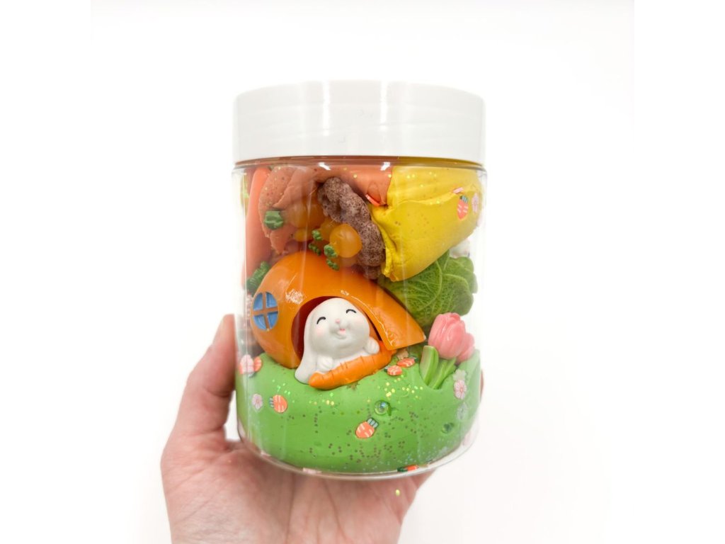 S velikonoční mamolínovou dózou, která je naplněná naší domácí modelínou, zajíčky a dalšími hračkami, si děti vyhrají na dlouhé hodiny.