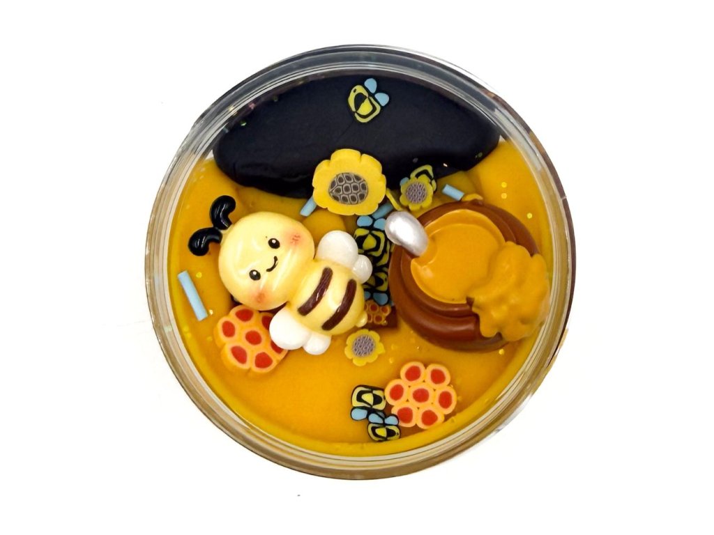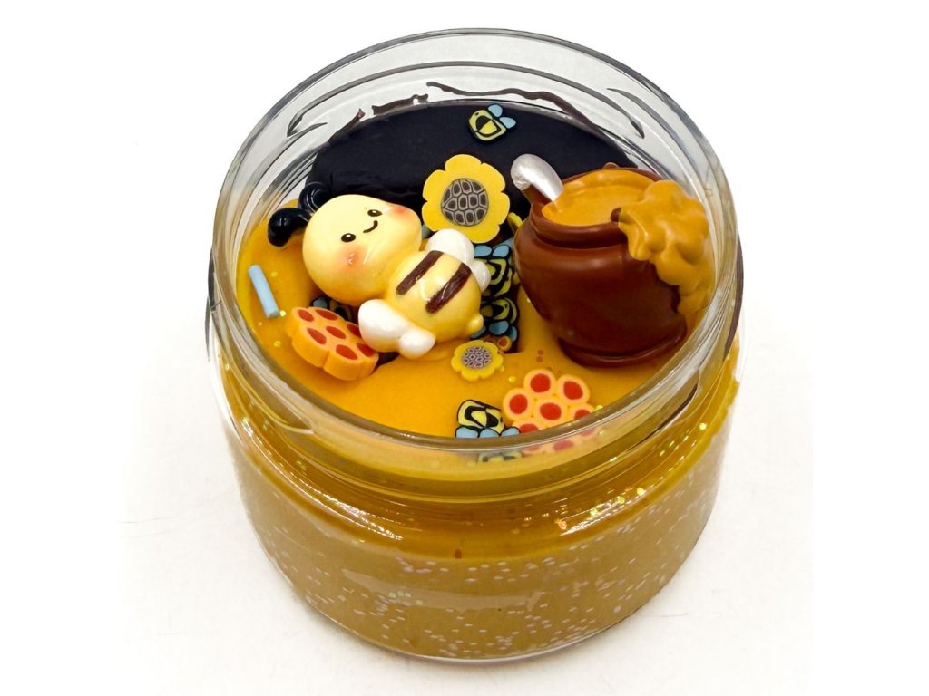 125g domácí dvoubarevné modelíny, třpytky, konfety, včelka, hrnec s medem