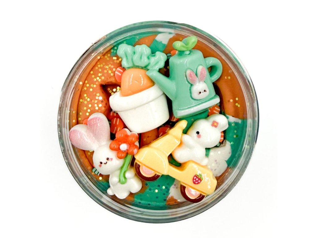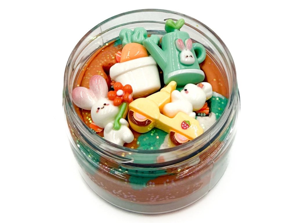 125g domácí tříbarevné modelíny, třpytky, konfety, zajíček 2ks, konvička, květináč
