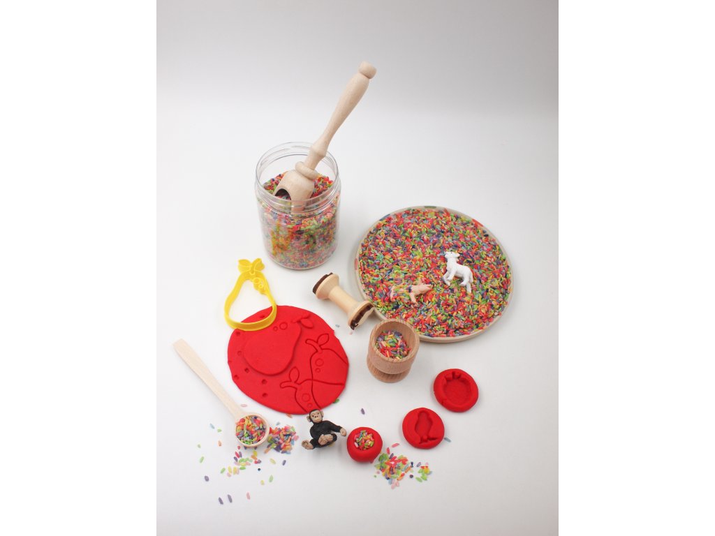 Hledáte box, kterým začít? Tenhle je ideální! Nejvhodnější je pro děti od 1 roku do 2 let. Takto malé děti rozvíjejí jemnou motoriku a díky modelíně a sypkému materiálu jim to půjde hravě. Navíc se hra propojuje s něčím, co dobře znají a osvojují si svá první slova.