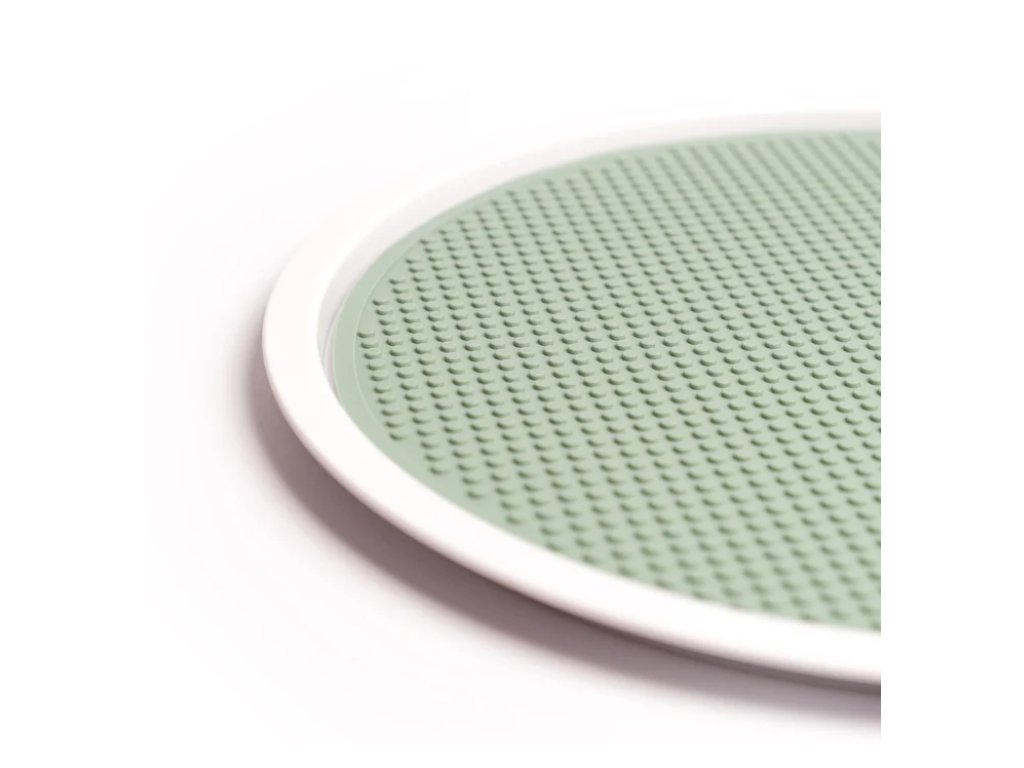 Podložky jsou vyrobené z pružného silikonu a mají tu výhodu, že je lze srolovat pro snadné skladování. Vezměte prosím na vědomí, že rohož bude doručena srolovaná a bude nutné ji nechat vyrovnat položením na rubovou stranu. Umístěte ji pod základnu PlayTRAY nebo jakýkoli těžký předmět na 24 hodin.