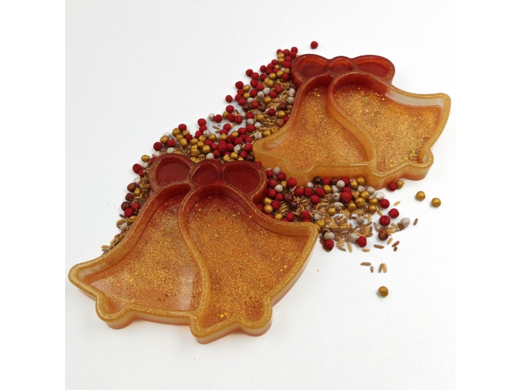 Smyslový tácek vyrobený z pryskyřice s motivem zvonků využijete na vánoční smyslohraní. Vhodný je nejen k sypkému materiálu, ale i k modelíně a mokrému hraní.
