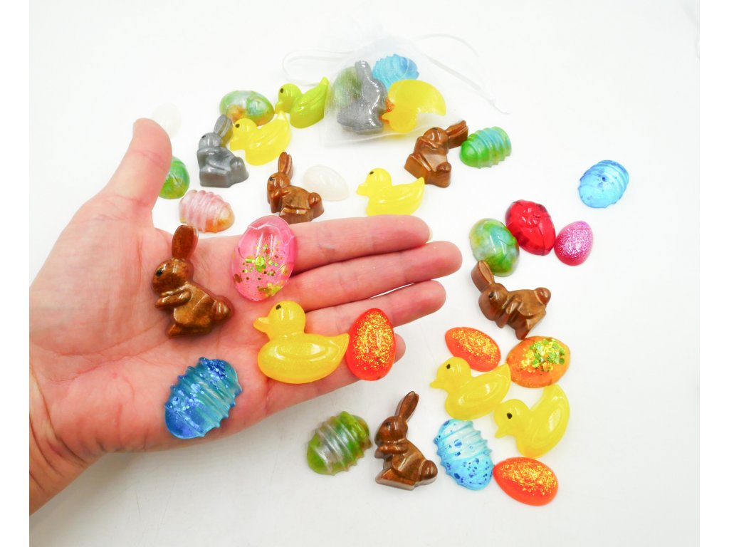 Velikonoční barevná vajíčka, zajíčci a kachnička z pryskyřice potěší každé dítě a můžete je darovat jako výslužku koledníkům. Tohle se totiž nezkazí.