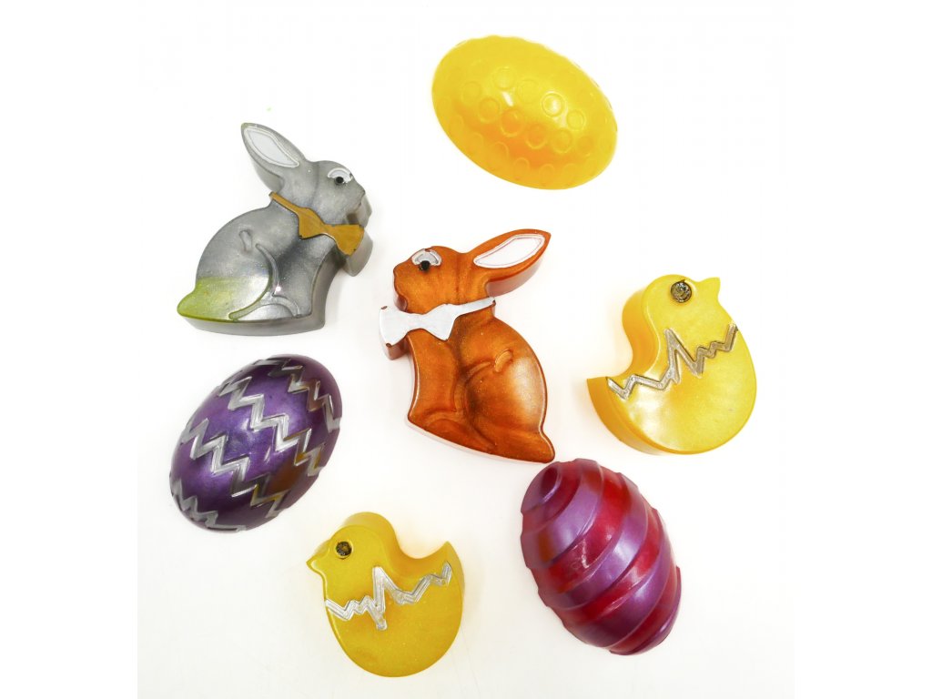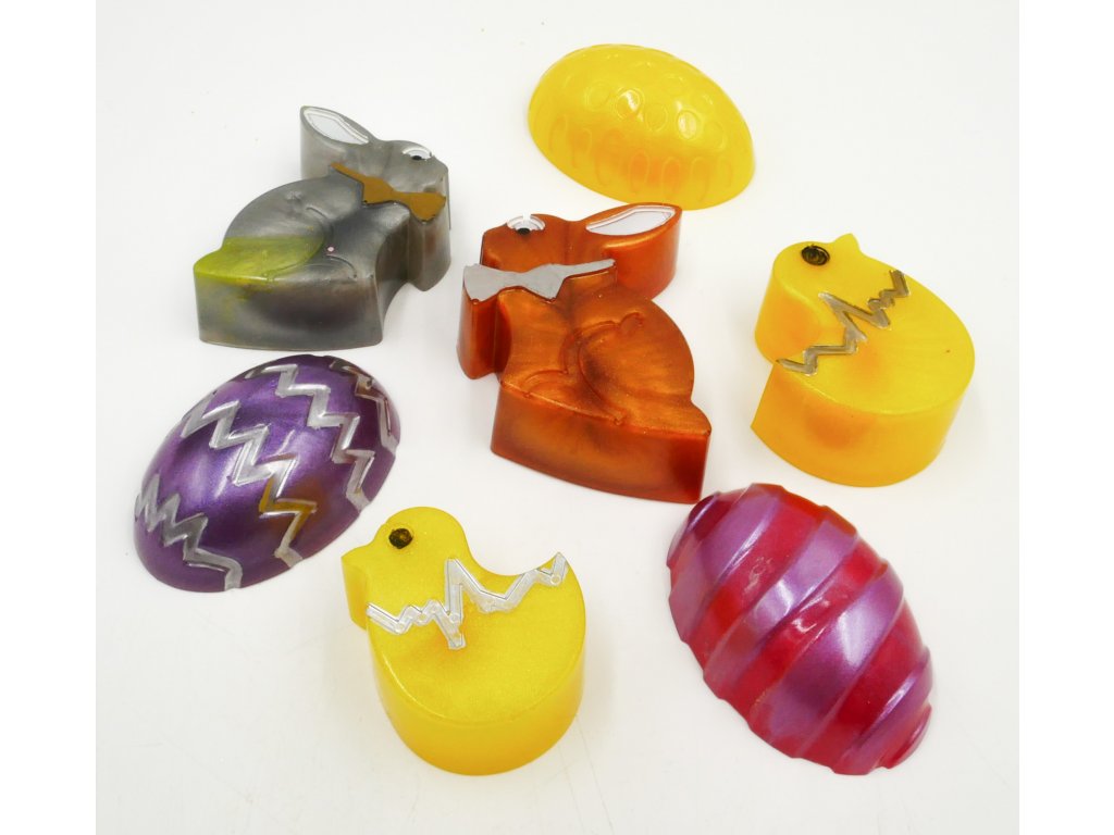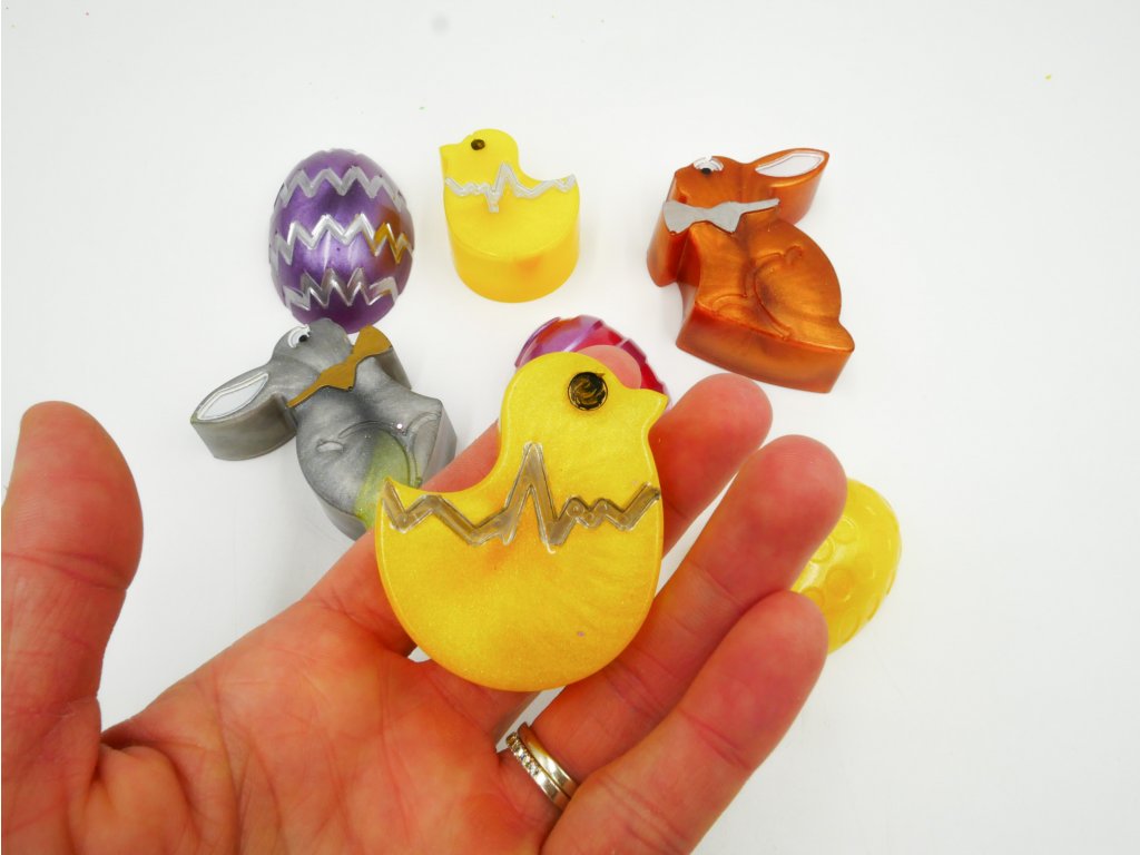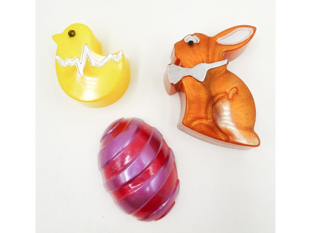 Velikonoční barevné vajíčko, zajíček a kuřátko z pryskyřice potěší každé dítě a můžete je darovat jako výslužku koledníkům. Tohle se totiž nezkazí.