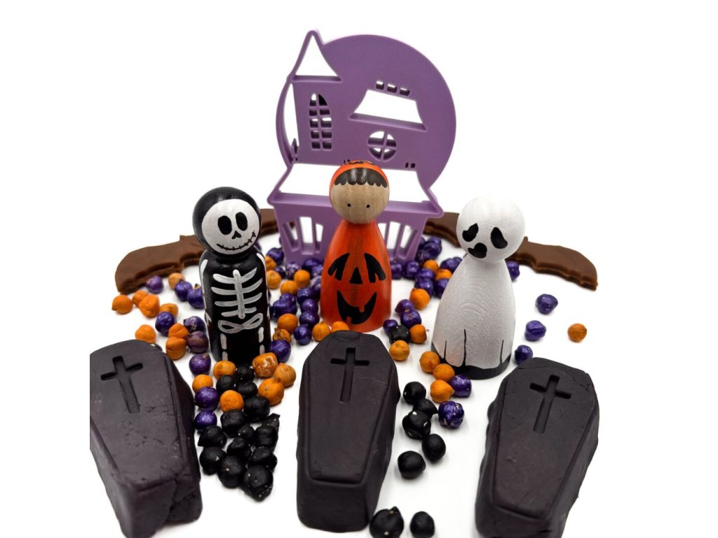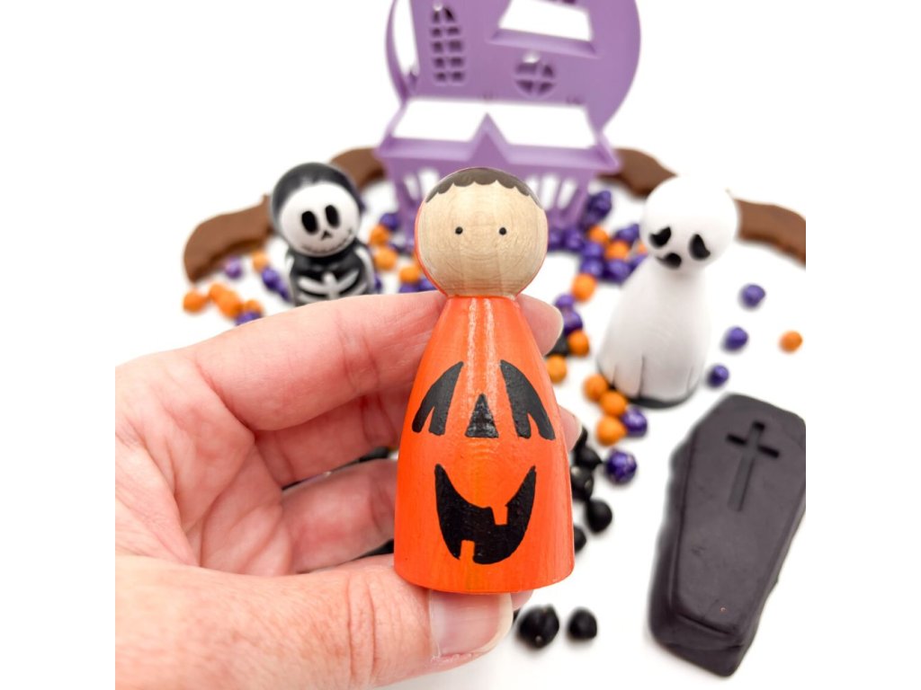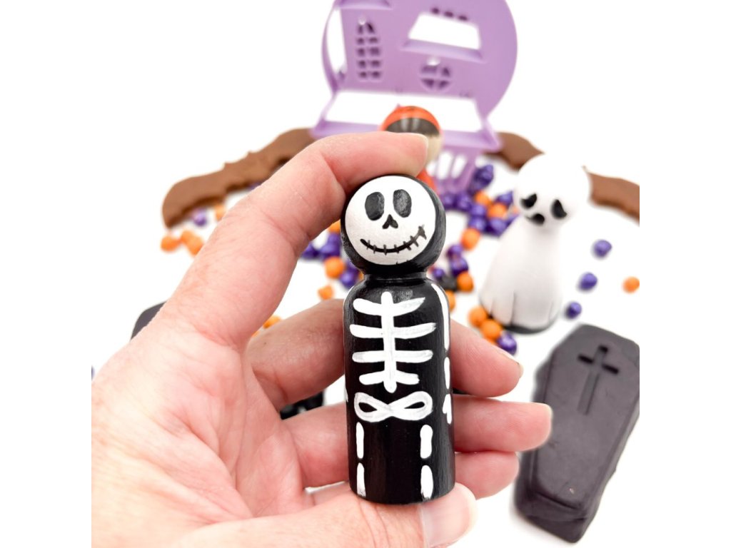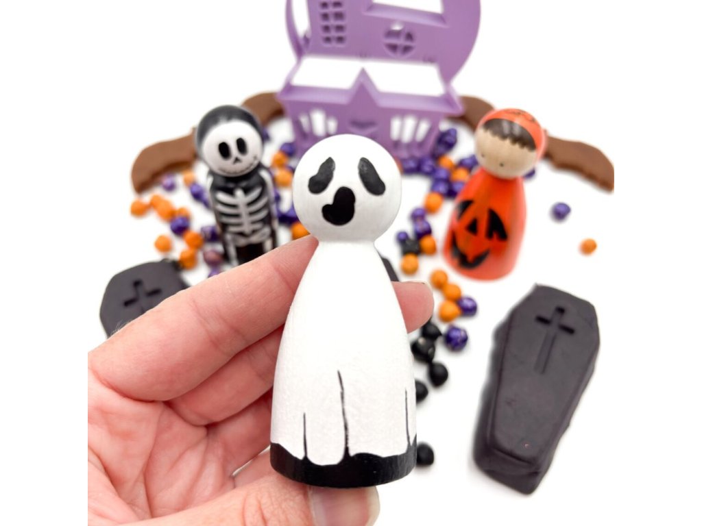 Ručně malované figurky dýňáka, kostlivce a nebo ducha využijete do malých světů, či se sypkým materiálem.