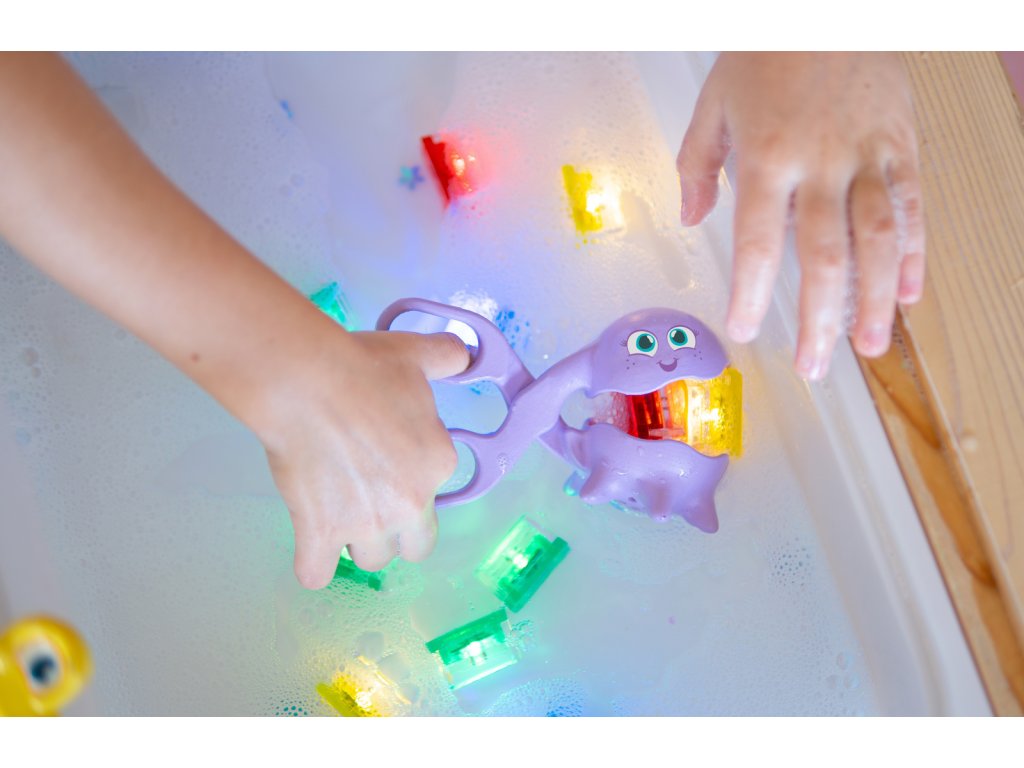 Hračky se Vám budou hodit k procvičení obratnosti prstů a naučení správného úchopu. Podporují také rozvoj koordinace ruka-oko. Hračka bude skvělým doplňkem k dalším hračkám Glo Pals, jako jsou smyslové nádoby nebo kostky, které svítí ve vodě.