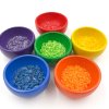 Sadu ručně malovaných mističek využijete na smyslohraní se sypkým materiálem či s kinetickým pískem.