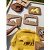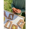 Destičky jsou vyrobené z 5mm bukové překližky a ošetřené lněným olejem. Jsou veliké 11x9cm.