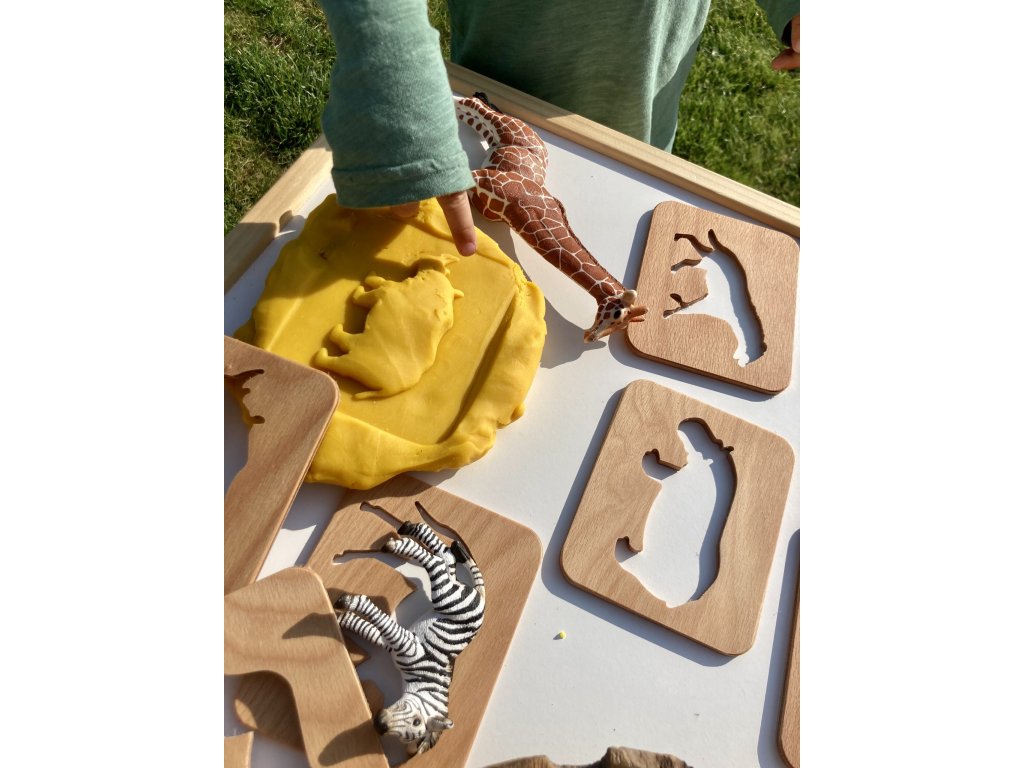 Kartičky využijete při hře skrze smysly. Obrázky můžete vysypávat sypkým materiálem, výřezy se dají vystlat modelínou nebo je v ní obtisknout. Děti si tak mohou osahat tvar jednotlivých zvířat a lépe si je zapamatovat. K destičkám můžou děti přiřazovat figurky nebo obrázky. Skvělé budou na obkreslování a vybarvování. Navíc se s nimi můžete vyblbnout při hraní se stíny!