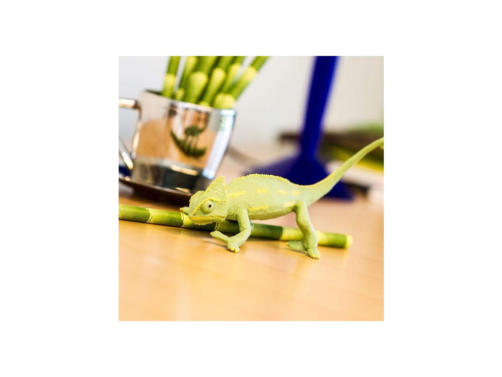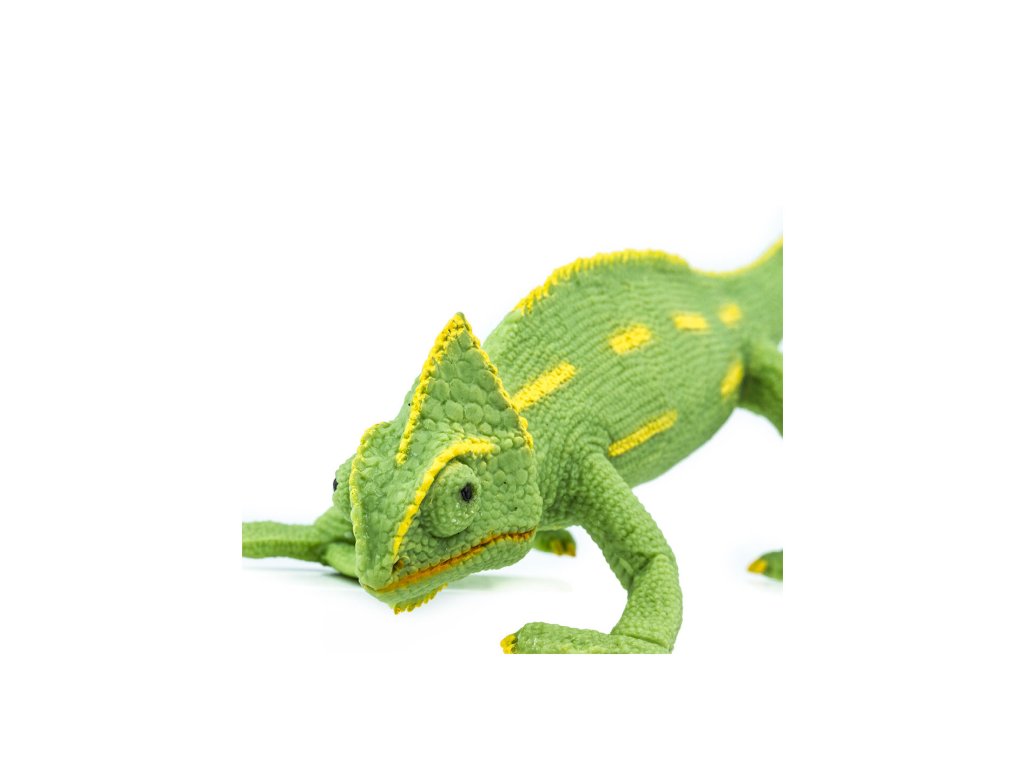 Figurka mláděte chameleóna jemenského. Chameleón jemenský se během svého růstu několiikrát svléká. Před začátkem svlékání ztmavne a začne se otírat o větvičky, aby se zbavil "staré" kůže.