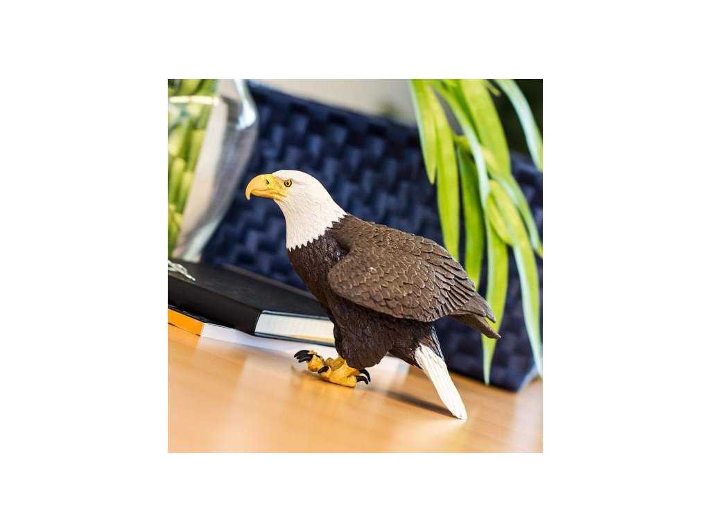 Figurka orla bělohlavého, velkého dravého ptáka žijícího v Severní Americe. Vyskytuje se většinou poblíž velkých otevřených vod s bohatými zásobami potravy a starými stromy na hnízdění. Hlavu a ocas má bílou, tělo hnědé a zobák, pařáty a duhovky má žluté.