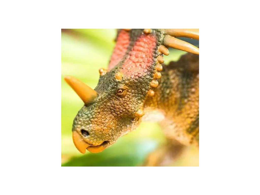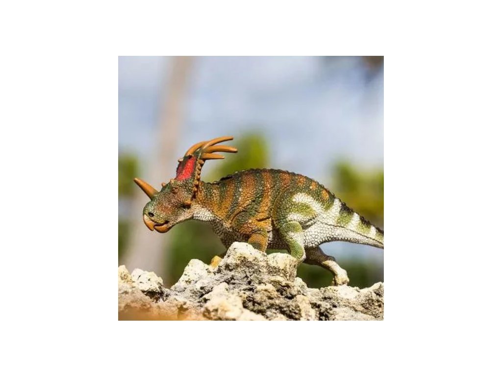 Figurka Styracosaura, neboli "ještěra s bodci", který patřil mezi býložravé dinosaury a žil v pozdním křídovém období asi před 75 miliony let.