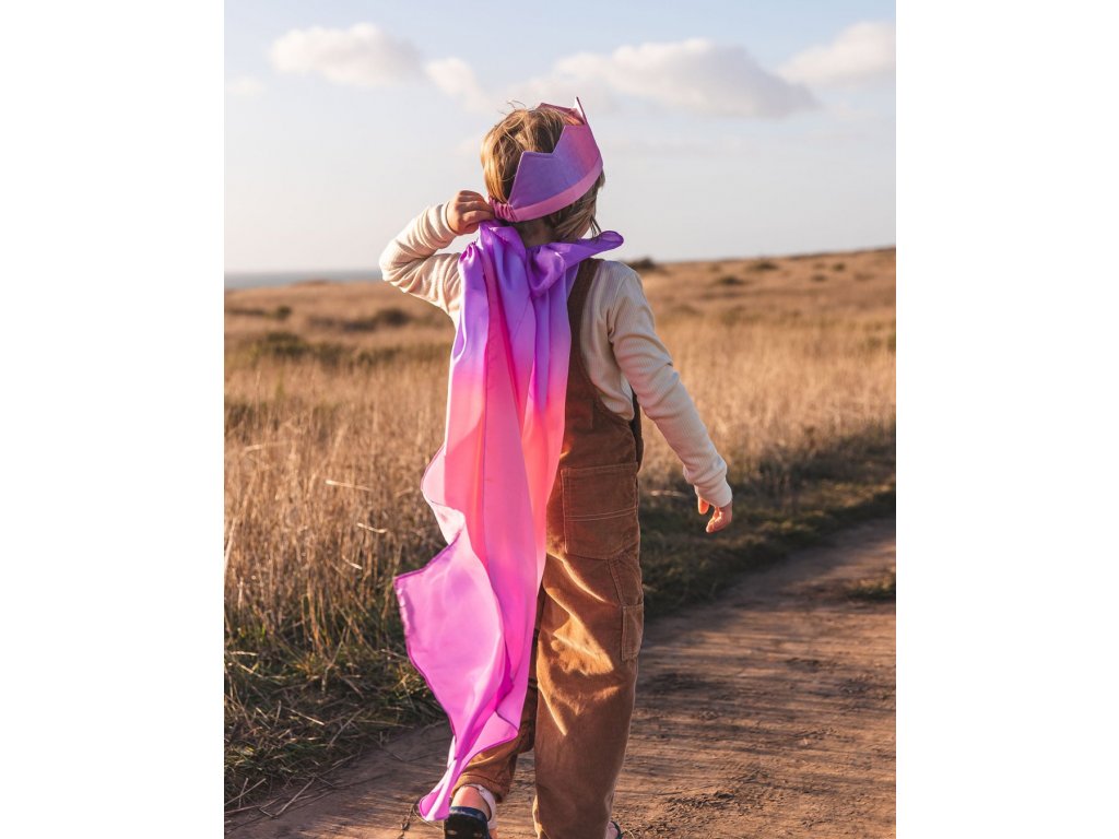 Hedvábný plášť Sarah´s Silk v růžových barvách má délku cca 80 cm a gumičku kolem krku, která se natahuje na délku 45-70 cm. Je vhodný pro většinu dětí ve věku od 3 do 8 let. Je vyroben ze 100% pevného přírodního hedvábí (o hustotě 8 momme).