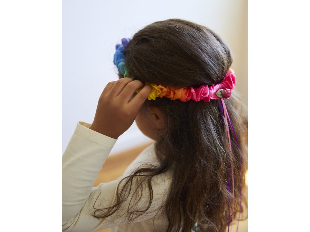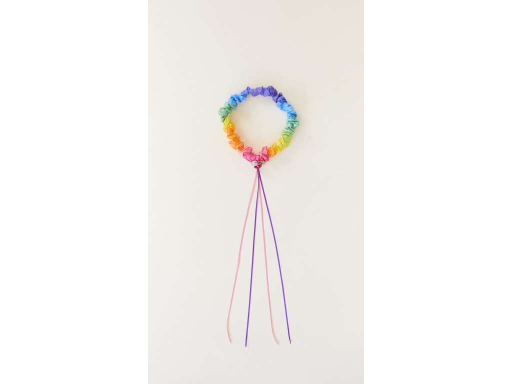 Věneček Sarah´s Silks v duhových barvách z elastické pruženky (gumy) o průměru cca 45-70 cm, která je všitá do 100% ručně barveného hedvábí. Příjemně se nosí a je vhodný dokonce i pro ty nejmenší, citlivé hlavičky.