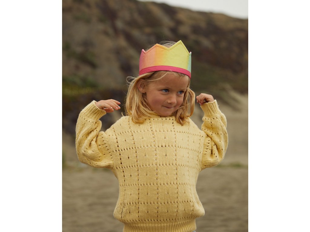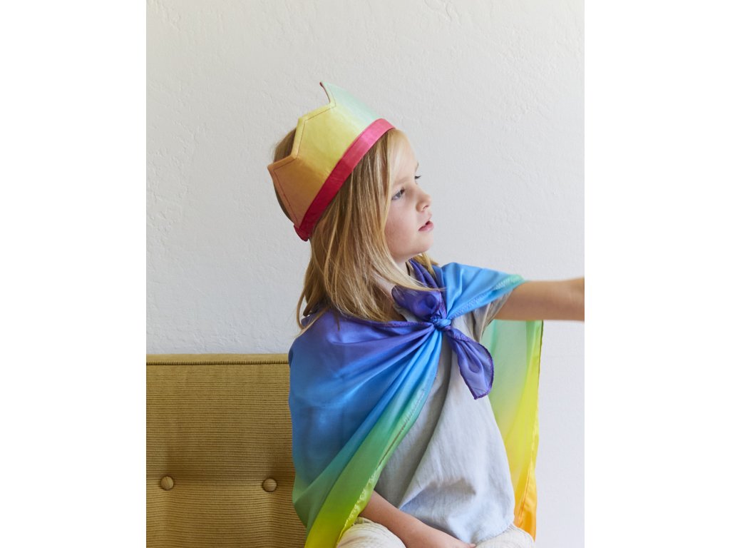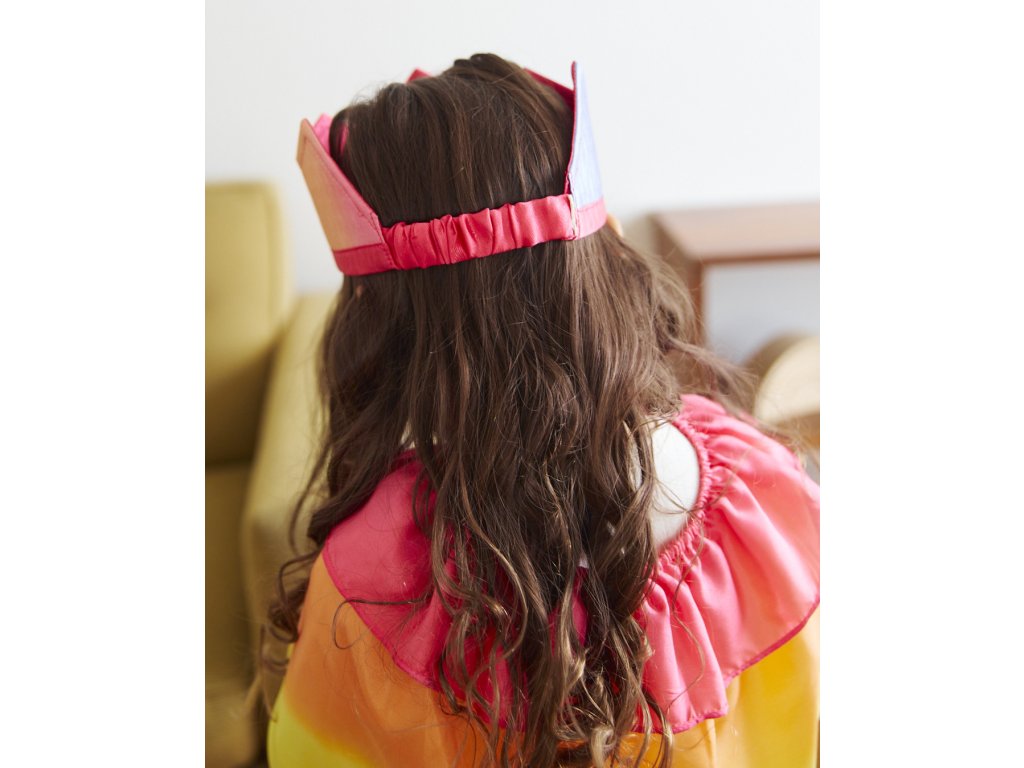 Hedvábné koruny Sarah´s Silks jsou krásné a lesklé a pohodlně se nosí. Díky zadní části na gumičku dokonale padnou na jakkoli velkou hlavu. Jsou ručně barvené na lesklé hedvábí se žakárovým vzorem ve všech oblíbených barvách. Děti je rády využijí při svých každodenních hrách s převleky plných fantazie. Dokonale se hodí také k oslavám narozenin a jiným slavnostem.