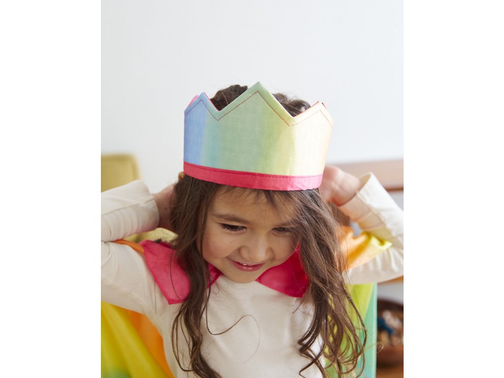 - Hra s otevřeným koncem s našimi hedvábnými korunami umožňuje dětem projevit fantazii a podporuje jejich nezávislost. Děti se rády převlékají za víly, rytíře, královny, krále jiné pohádkové bytosti.