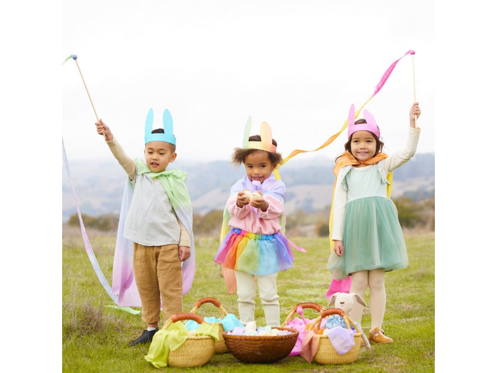 Velikonoční edice - Hedvábné ouška jsou krásné a lesklé a pohodlně se nosí. Díky zadní části na gumičku dokonale padnou na jakkoli velkou hlavu. Jsou ručně barvené na lesklé hedvábí se žakárovým vzorem ve všech oblíbených barvách. Děti je rády využijí při svých každodenních hrách s převleky plných fantazie.