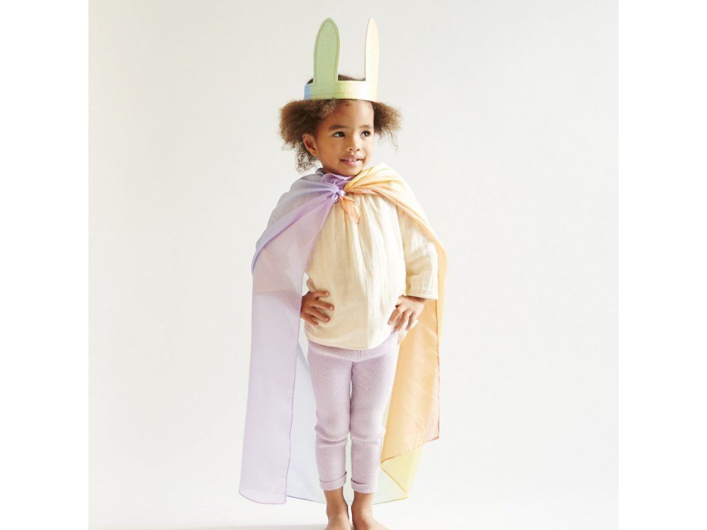 - Hra s otevřeným koncem s našimi hedvábnými korunami umožňuje dětem projevit fantazii a podporuje jejich nezávislost. Děti se rády převlékají za víly, rytíře, královny, krále jiné pohádkové bytosti.