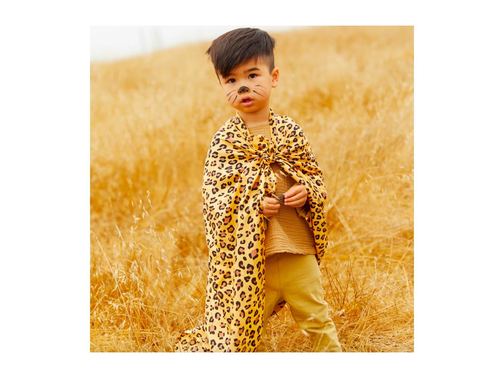Vydejte se do světa rychlosti a dobrodružství s hedvábným šátkem Gepard, kde každé místo vypráví příběh o divokých honičkách napříč savanou!Toto podmanivé hedvábí se svými dynamickými vzory a zářivými barvami vybízí nejmenší, aby vyrazili do vzrušujících dobrodružství. Tento šátek je ideální na oblékání a dodá hře vašeho dítěte nával energie a vzrušení!