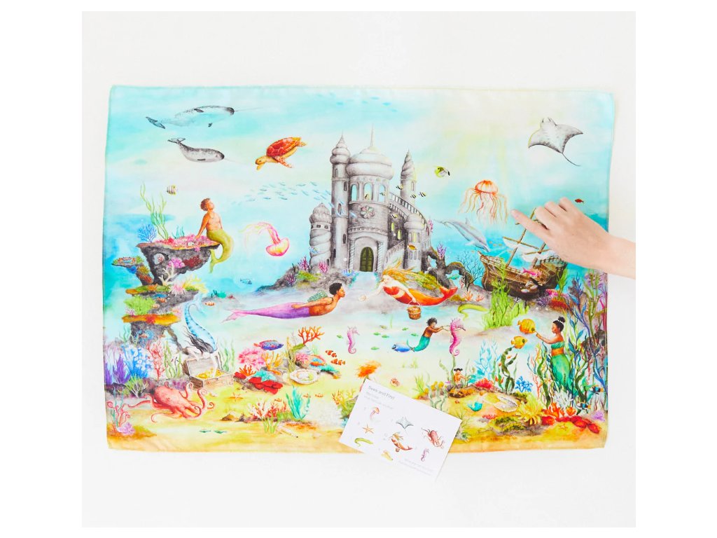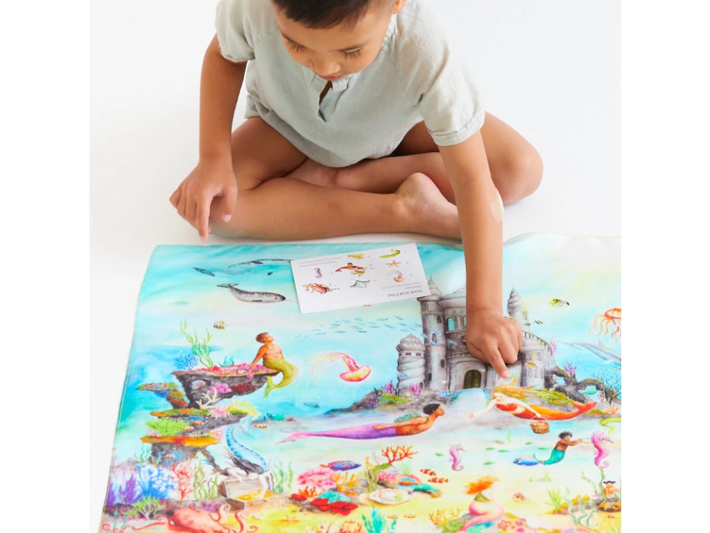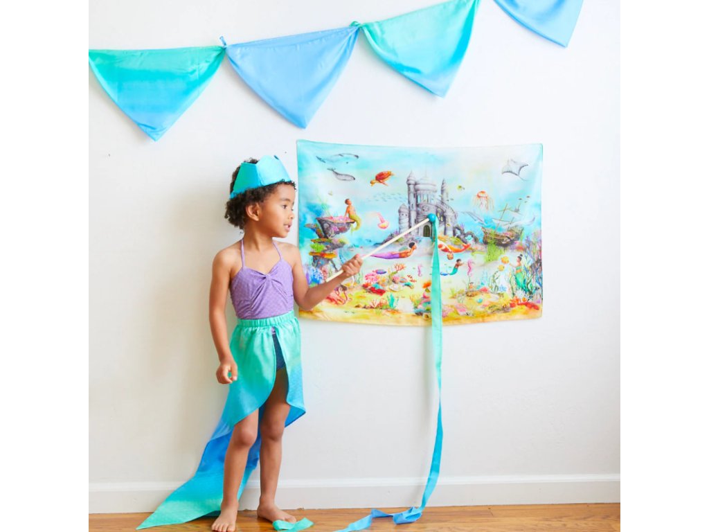 Hledejte a najděte mořské panny, mořské muže, mořské tvory a další bytosti! Hedvábný šátek je ideální nejen na hru doma, ale je to i skvělá hračka, kterou si můžete vzít na výlety. Šátek je lehký a hra s ním zabaví Vaše dítě na dlouhé hodiny, protože vždy je co nového najít!