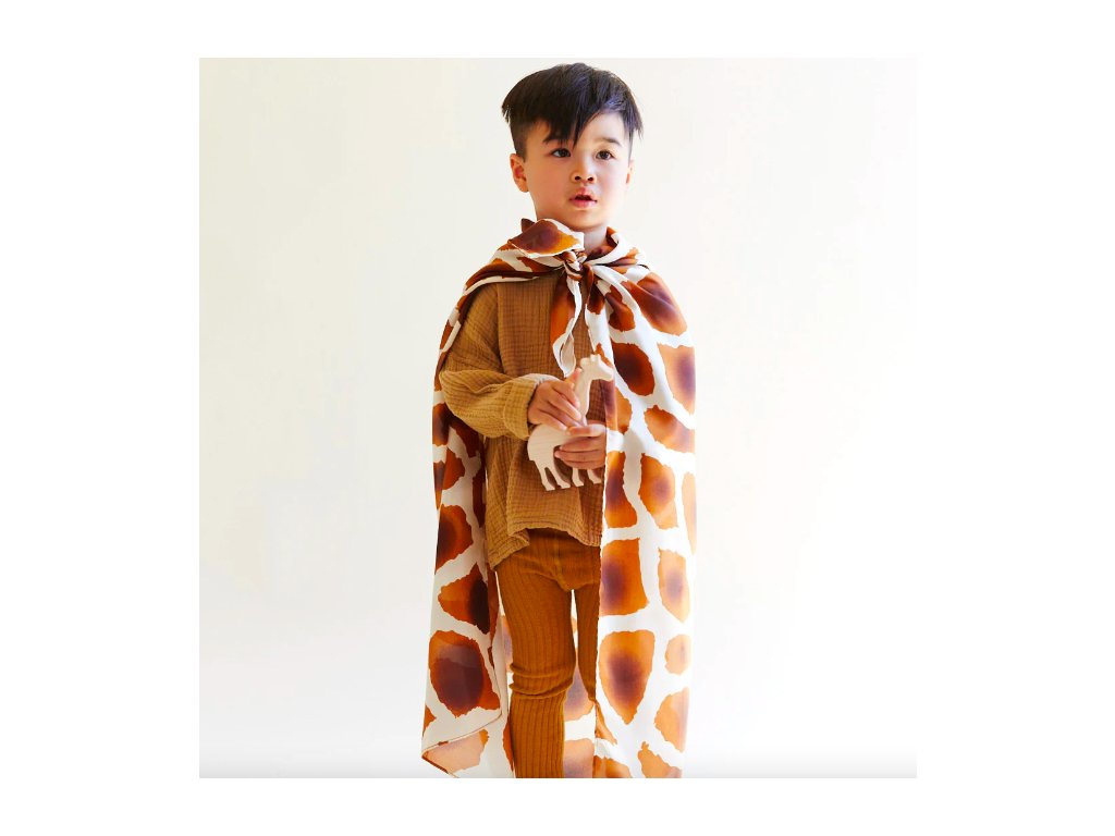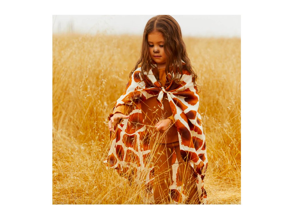 Dotkněte se oblohy s hedvábným šátkem Žirafa, kde každé místo skrývá tajemství z korun stromů savany! Tento nádherný hedvábný šátek v teplých barvách zve malé děti k prozkoumání vysokého a rozmarného světa fantazie. Tento šátek je ideální pro oblékání avnese do každého dobrodružství pocit úžasu a radosti.