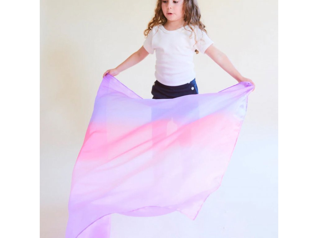 Hedvábné šátky jsou inspirativní kouzelnou hračkou, se kterou si budou chtít děti hrát znovu a znovu. Díky jednoduchosti a svým nepřeberným možnostem využití cílí tyto obří šátky přímo na tvůrčí potenciál dětí.