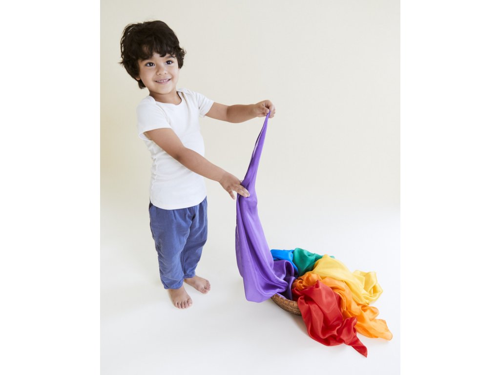 Hedvábné šátky jsou inspirativní kouzelnou hračkou, se kterou si budou chtít děti hrát znovu a znovu. Díky jednoduchosti a svým nepřeberným možnostem využití cílí tyto obří šátky přímo na tvůrčí potenciál dětí.