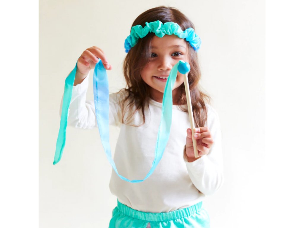 Hůlka se stuhou v mořských barvách vybízí děti k aktivní hře, zlepšuje jejich pohybové schopnosti a vede je k tanci.