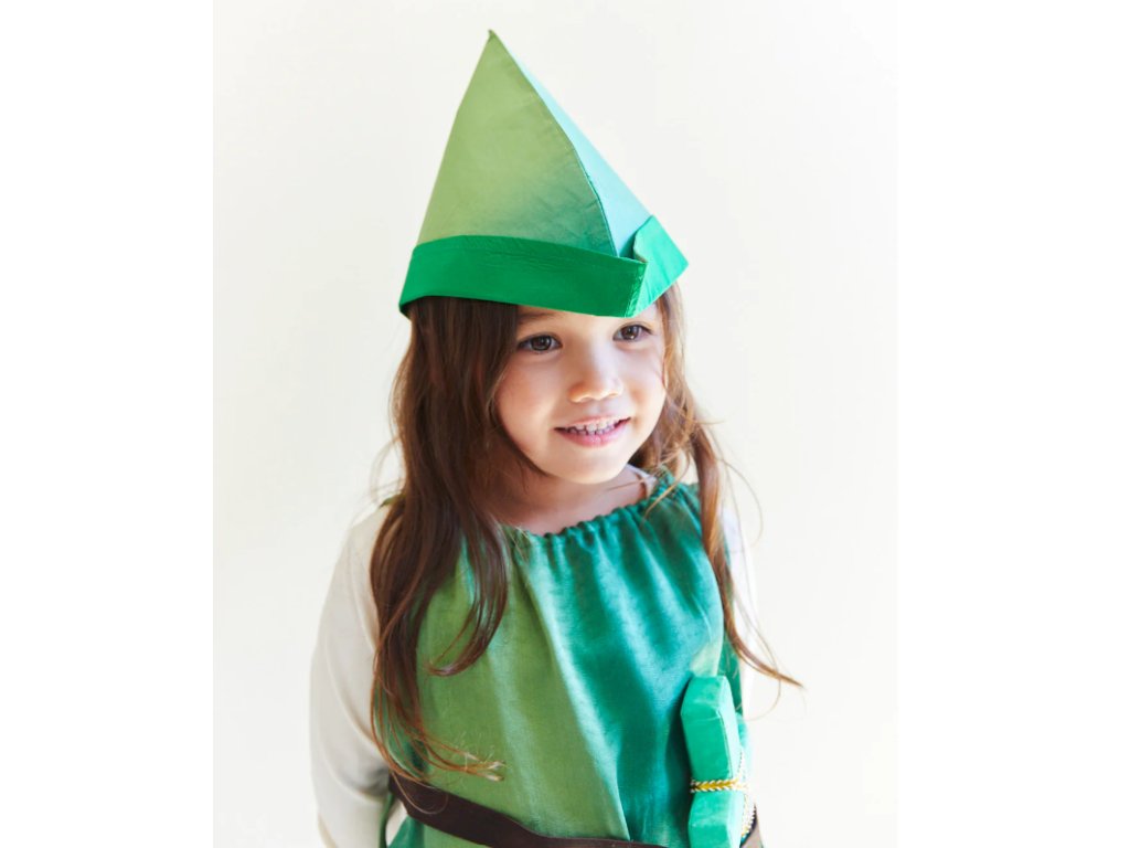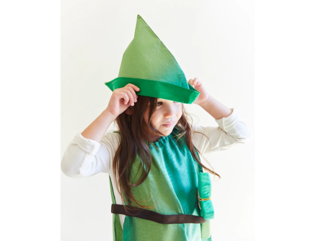Peter Pan, Robin Hood, další pohádková postava nebo cokoliv, co si vaše dítě dokáže představit! Tento klobouk je doplněk, který vydrží po celé dětství a Vy ho využijete znovu a znovu! Perfektně se hodí k tunice Petra Pana a jako doplněk doporučujeme hedvábnou zelenou dýku.