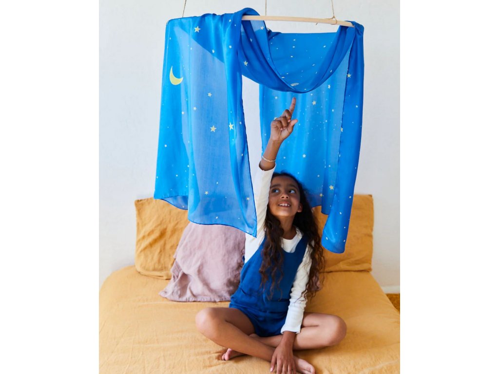 Obří hedvábné šátky jsou inspirativní kouzelnou hračkou, se kterou si budou chtít děti hrát znovu a znovu. Díky jednoduchosti a svým nepřeberným možnostem využití cílí tyto obří šátky přímo na tvůrčí potenciál dětí.