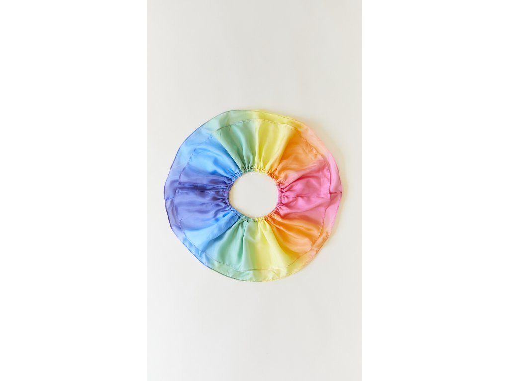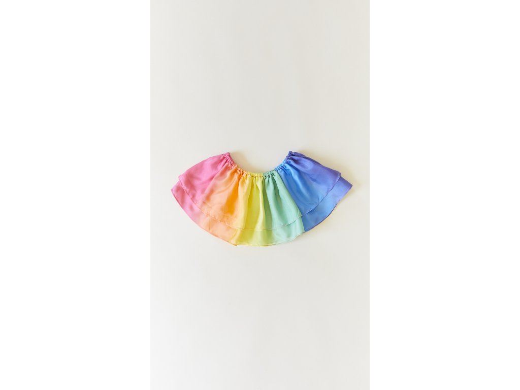 Duhové tutu sukénky jsou cca 20 cm dlouhé s gumou v pase, která se pohodlně natahuje na délku cca 50 - 66 cm. Sukénky v duhových barvách jsou dvojité, ze 100% přírodního hedvábí. Jsou ručně barveny za použití ekologických barev.