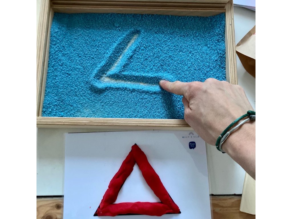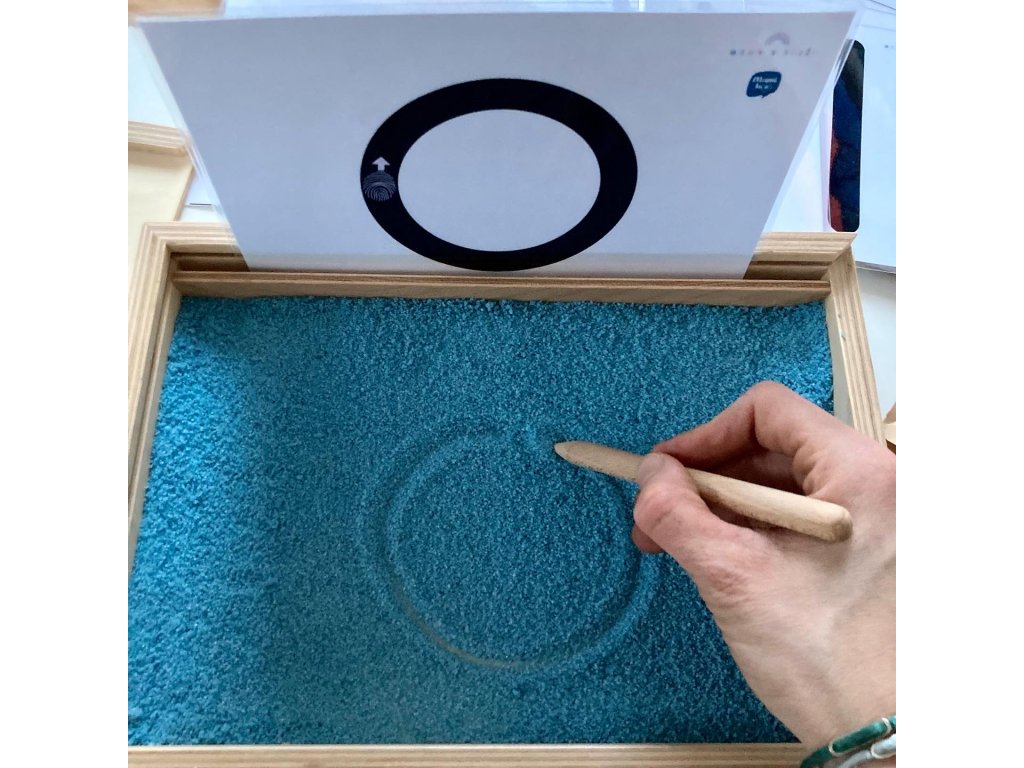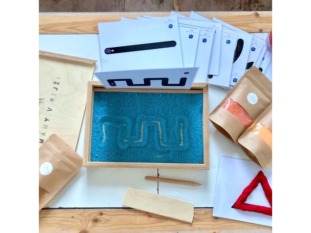 Montessori pomůcka, s kterou pomůžete vašemu dítěti uvolnit zápěstí, naučit se základní obrazce a postupně abecedu, čísla a nakonec psát. Nejprve dítě kreslí do soli prstíkem, poté tužkou. Když se to nepodaří, lehce se zatřesením pískovnice vše vymaže a nůže začít znovu. Po aktivitě vše jednoduše zavřete víkem a uložíte.
