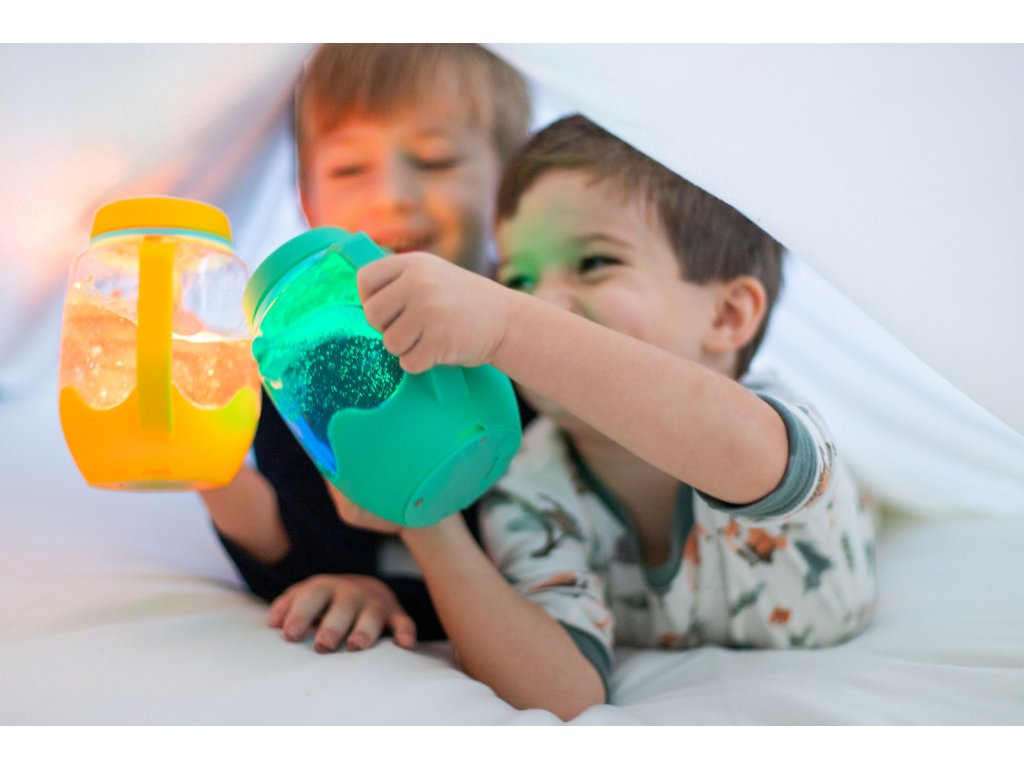 Přeneste se do barevného světa s jedinečnými zářícími smyslovými nádobami Glo Pals! Tyto inovativní hračky jsou dokonalým nástrojem pro rozvoj kreativity a představivosti dítěte a zároveň nabízejí skvělou zábavu a relaxaci. Senzorické dózy Glo Pals se postarají nejen o skvělou zábavu! Měnící se barvy světla dítě zaujmou a sledování živlů vznášejících se ve vodě dítě uklidní a uvolní.