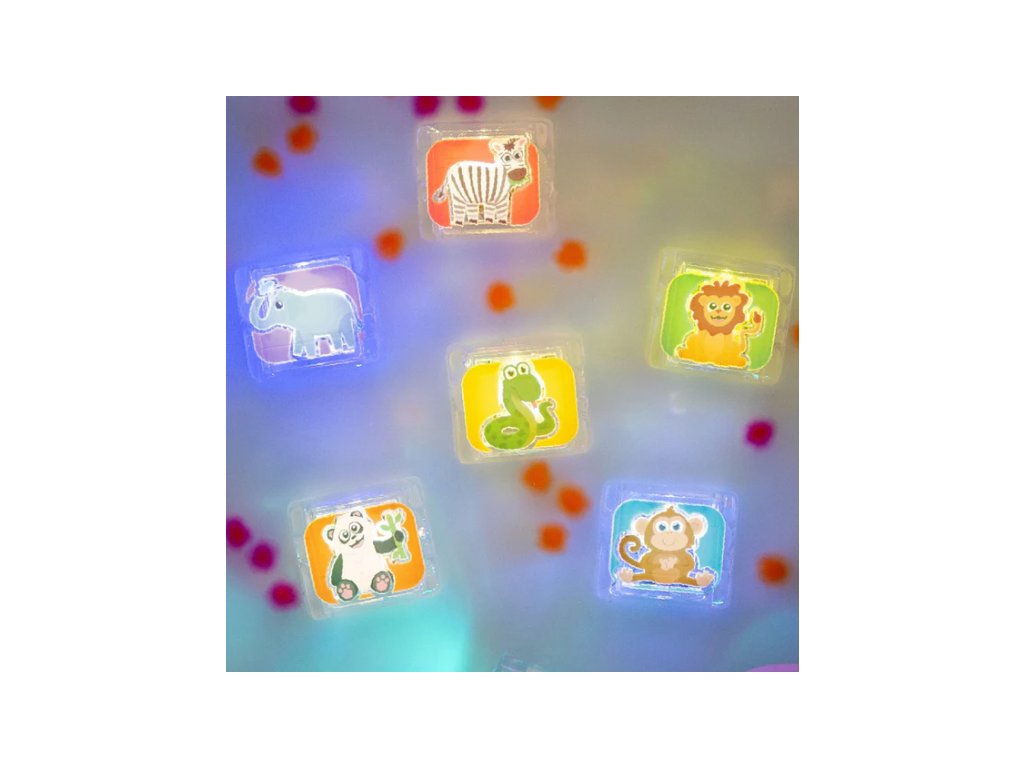 Jak Glo Pals funguje - Jedna kostka svítí až 16 hodin, tedy přibližně na 30 večerních koupelí. Kostka se rozsvítí pouze při kontaktu s vodou. Po vyjmutí z vody se kostka vypne. Po vyjmutí kostky z vody se vypne. Každá kostka má nevyměnitelnou knoflíkovou baterii.