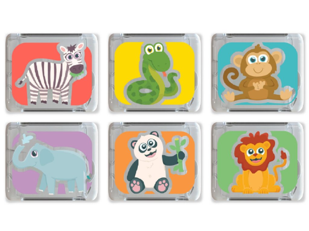 Vydejte se na barevnou, kouzelnou výpravu do světa divoké přírody! Každou kostku v této sadě zdobí roztomilé zvířátko – od mazlivé pandy, hravé opičky a majestátního slona až po hbitého hada, odvážného lva a veselou zebru. Ideální volba pro malé objevitele, kteří milují přírodu a tvořivou hru.