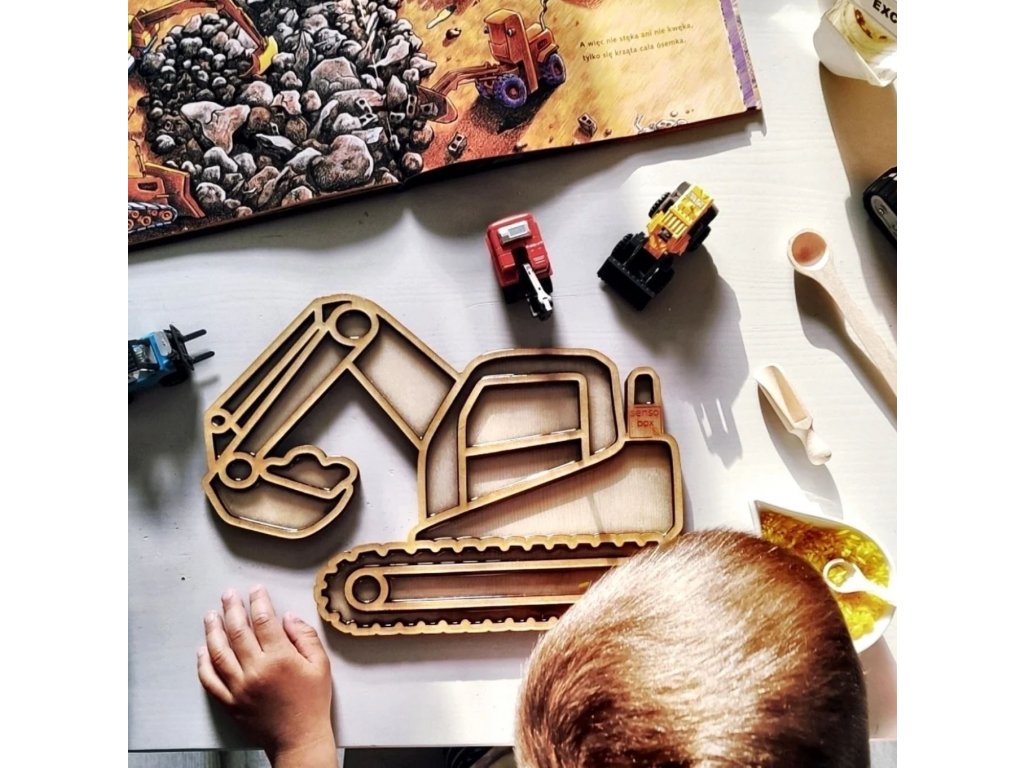 Smyslový tácek pomáhá k rozvoji jemné motoriky, kreativity a představivosti, zároveň propojuje dětskou hru s přírodou. Smyslový tácek Bagr využijete především na smyslohraní spojené se stavbou.