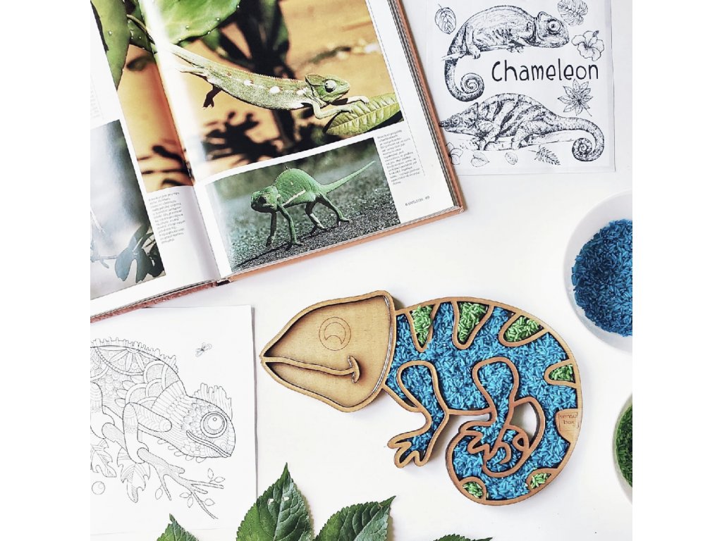 Smyslový tácek pomáhá k rozvoji jemné motoriky, kreativity a představivosti, zároveň propojuje dětskou hru s přírodou. Smyslový tácek Chameleon využijete na především na podzimní smyslohraní.
