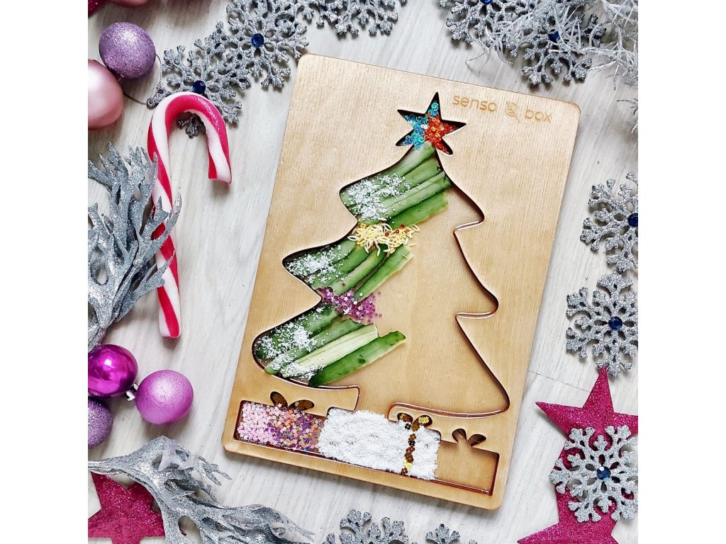 Smyslový tácek pomáhá k rozvoji jemné motoriky, kreativity a představivosti, zároveň propojuje dětskou hru s přírodou. Smyslový tácek Vánoční strom s ozdobami využijete především na smyslohraní spojené se zimou a Vánocemi.