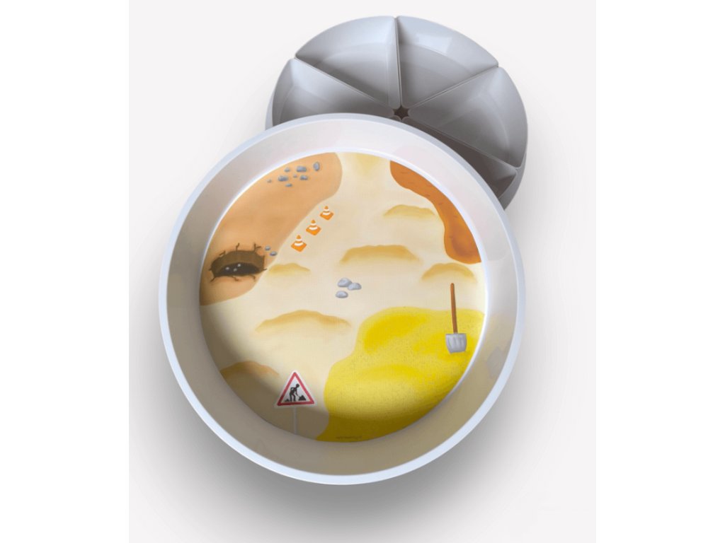 Vložka do kulatého Play Tray Vám usnadní a urychlí přípravu sensory play na téma stavba. Využijte obrázek jako šablonu pro senzorický materiál, nebo jako náhradu některého z nich. Fantazii se meze nekladou, a tak může být každá hra jiná!