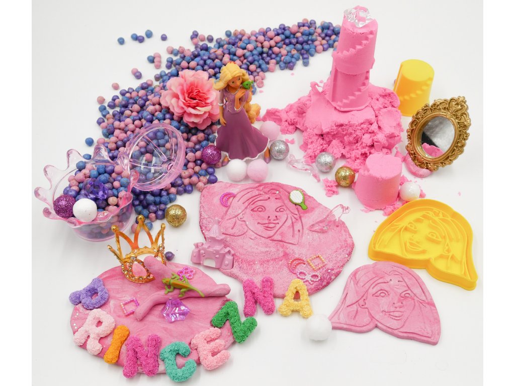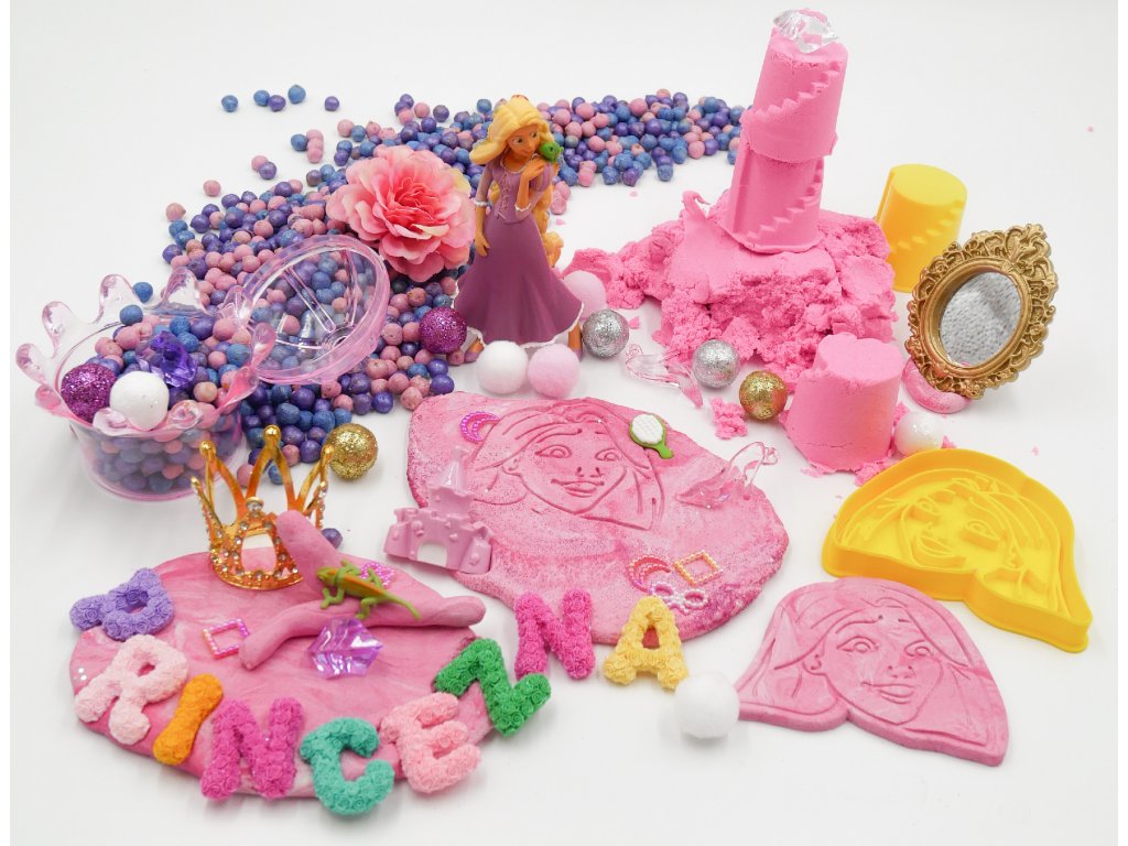 Střední smyslobox obsahuje vše - modelínu, kinetický písek, třpytivou cizrnu a spousta doplňků ke tvoření a hraní. Každá dívka si tento smyslový box zamiluje a bude se k němu opakovaně vracet si pohrát a rozvíjet svou fantazii.