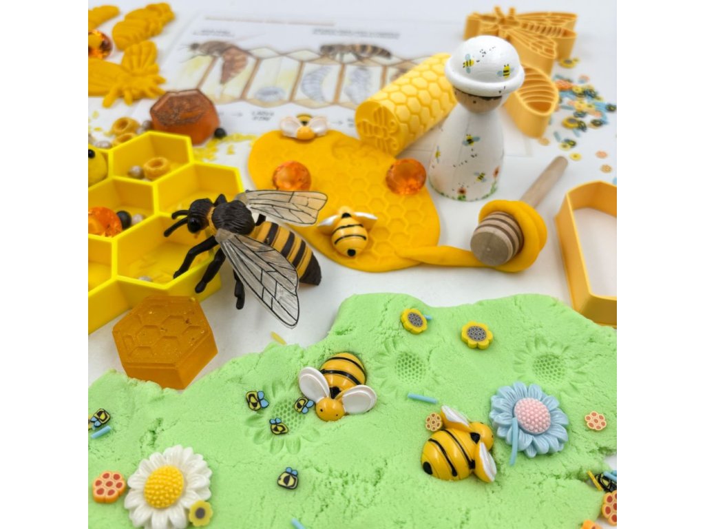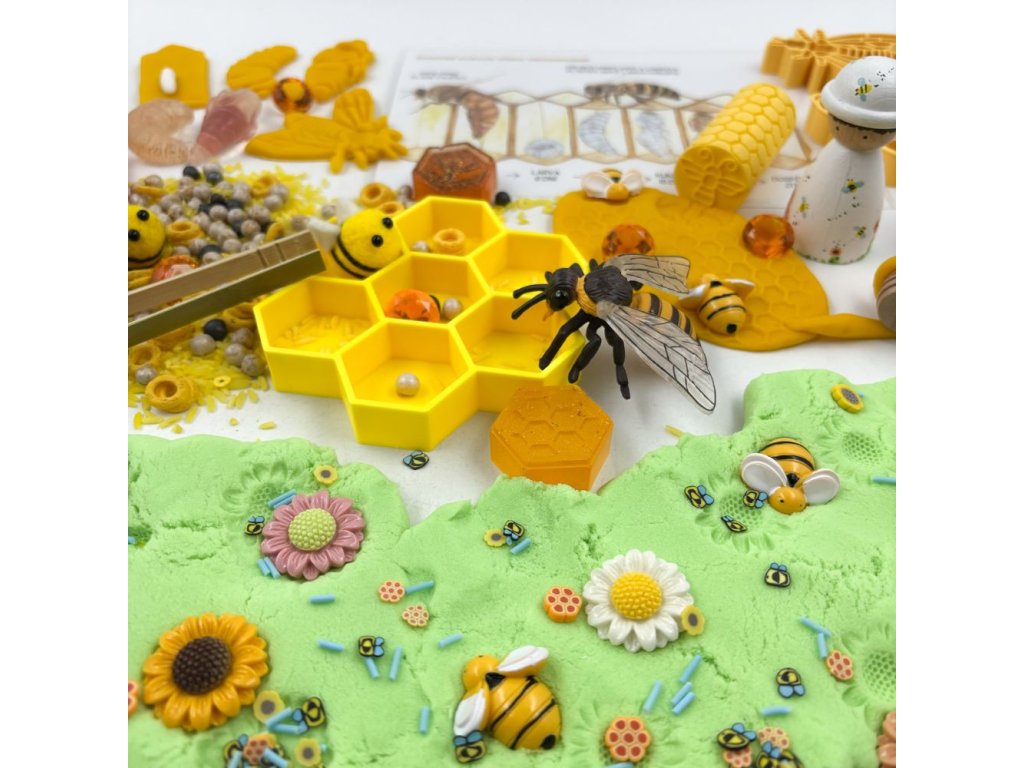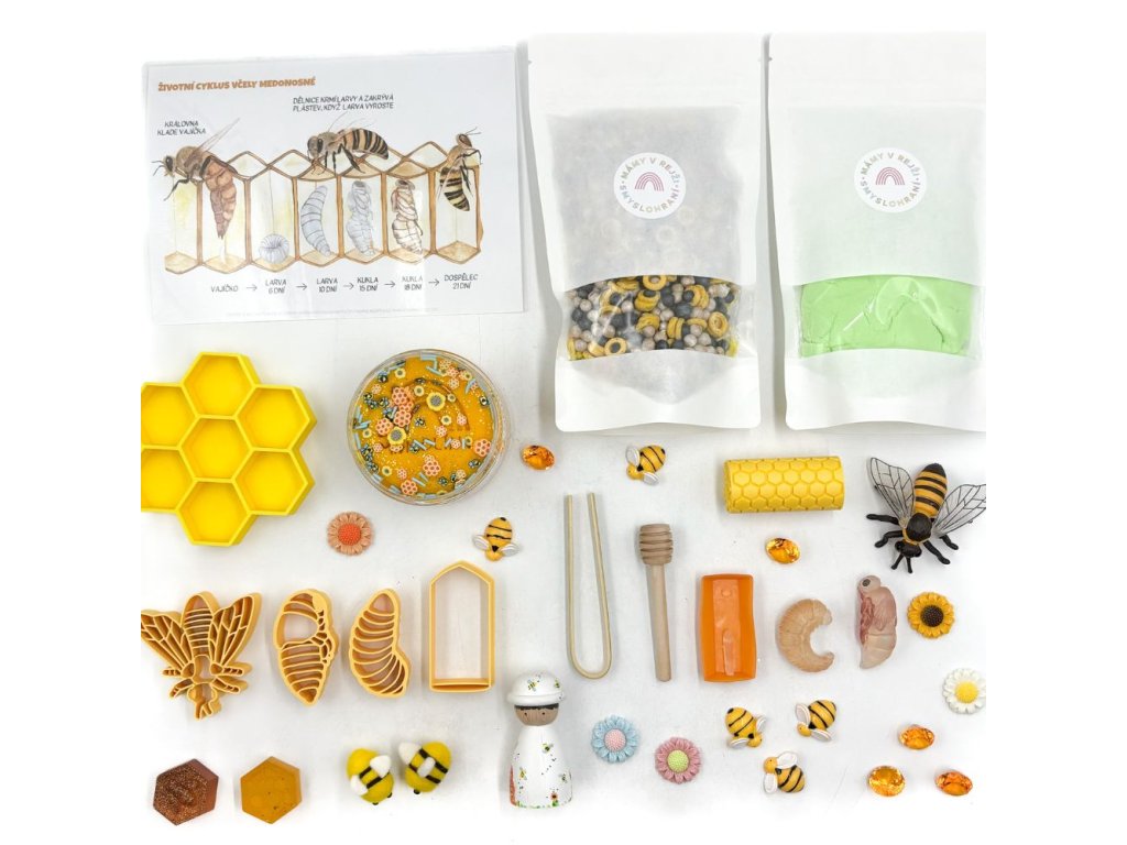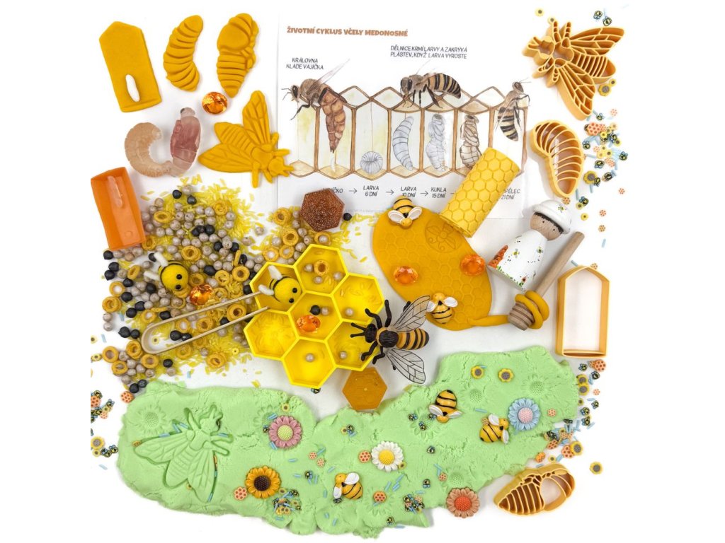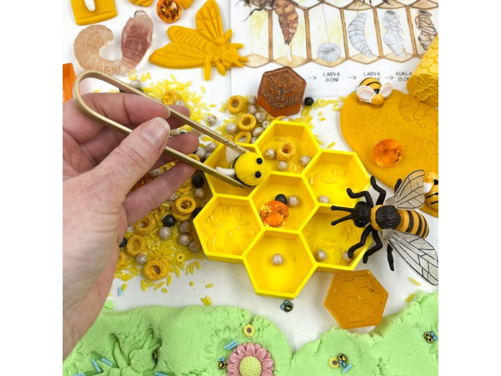 Včely nejsou jen krásné, ale také nepostradatelné pro náš ekosystém. V tomto smyslovém boxu děti objeví vše, co je se včelami spojené – od rostlinek, které opilují, až po krásu včelího úlu a domečků pro včelky. Zajímavé pro starší děti bude, jak se včelka vyvíjí. To si znázorníte skrze realistické figurky a vykrajovátka, se kterými vytvoříte larvu, kuklu a dospělou včelu. S různými texturami, zvuky, čichem a objekty se děti nejen seznámí s včelím světem, ale také rozvíjejí své smyslové vnímání, jemnou motoriku a kreativitu.