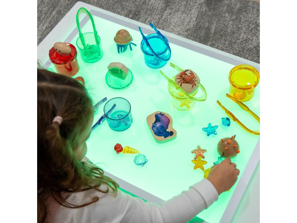 Ať už se používá ke zkoumání světla, barev a tvarů, pro skupinovou práci nebo pro tiché nezávislé objevování, chladná a čistá záře poskytuje perfektní kulisu pro soustředěné učení.