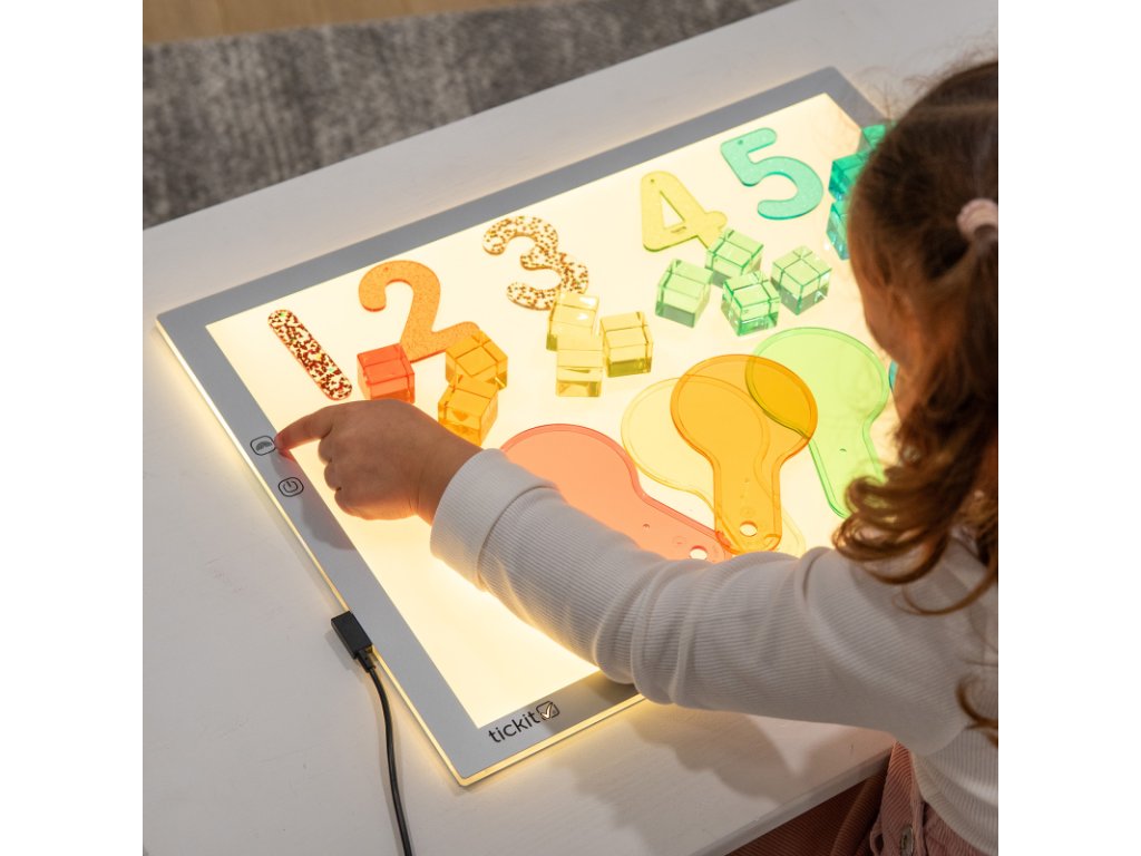 Ať už se používá ke zkoumání světla, barev a tvarů, pro skupinovou práci nebo pro tiché nezávislé objevování, chladná a čistá záře poskytuje perfektní kulisu pro soustředěné učení.