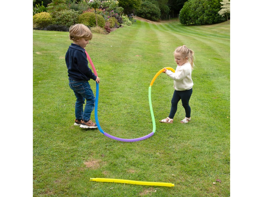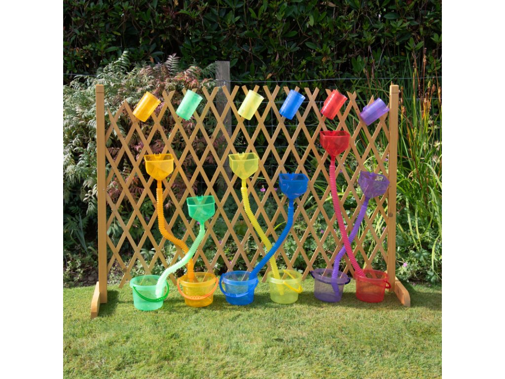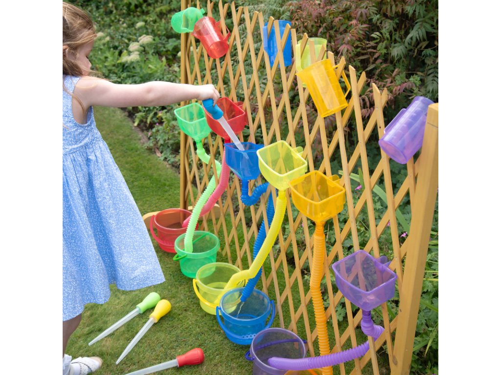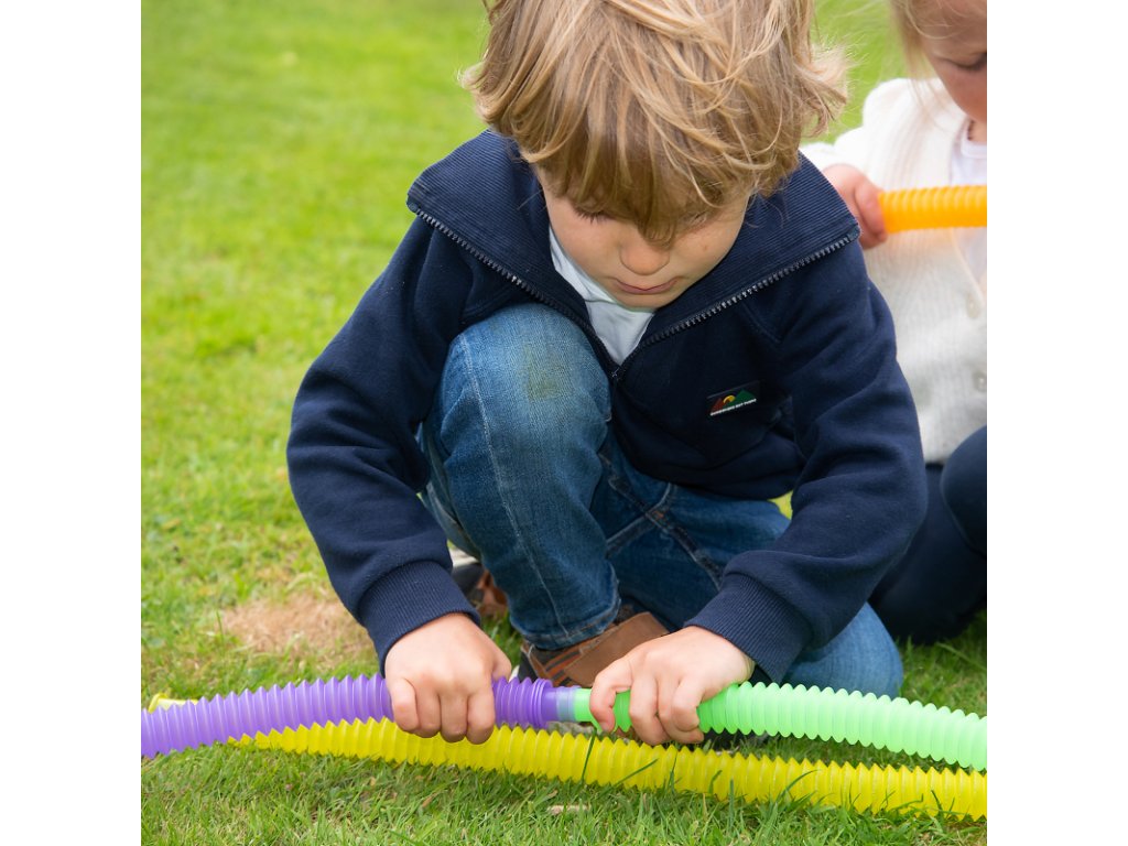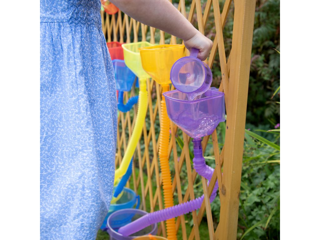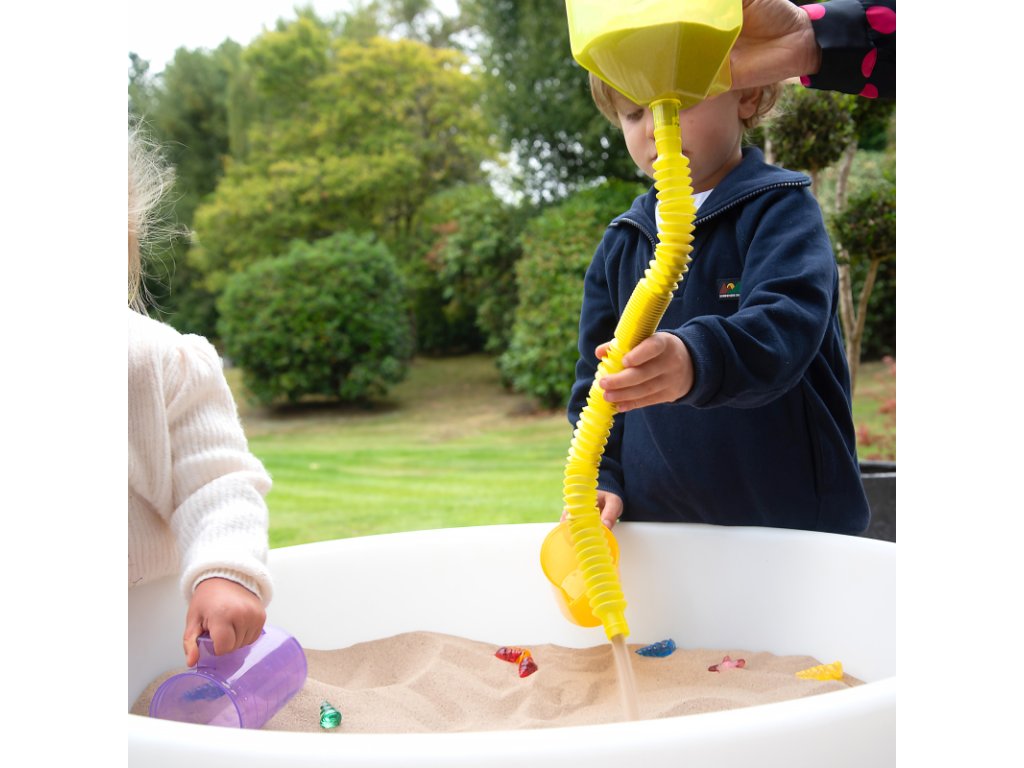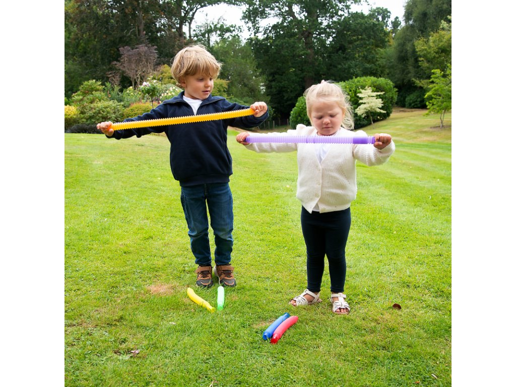 Tyhle rozšiřitelné trubice jsou ideální pro připevnění k trychtýřům. Společně s využitím konviček a kyblíčků pak vytvoříte poutavé vodní hry. Vysouvání a zasouvání trubic vyžaduje fyzické dovednosti, soustředění a koordinaci a vytváří zábavný praskavý zvuk.