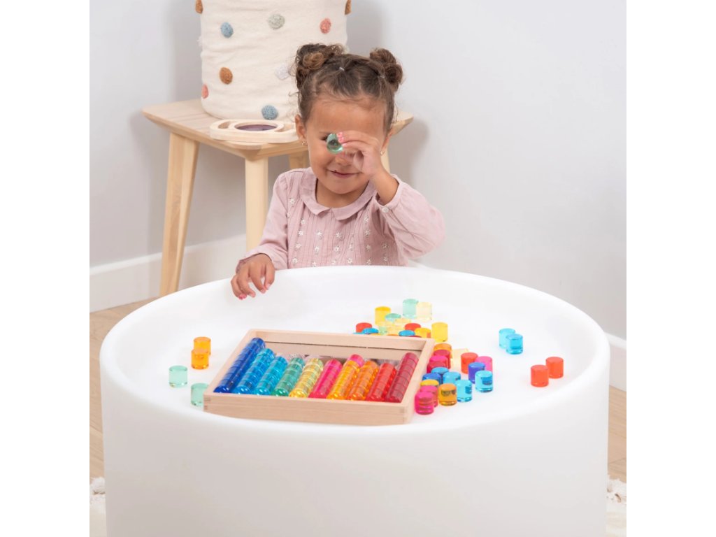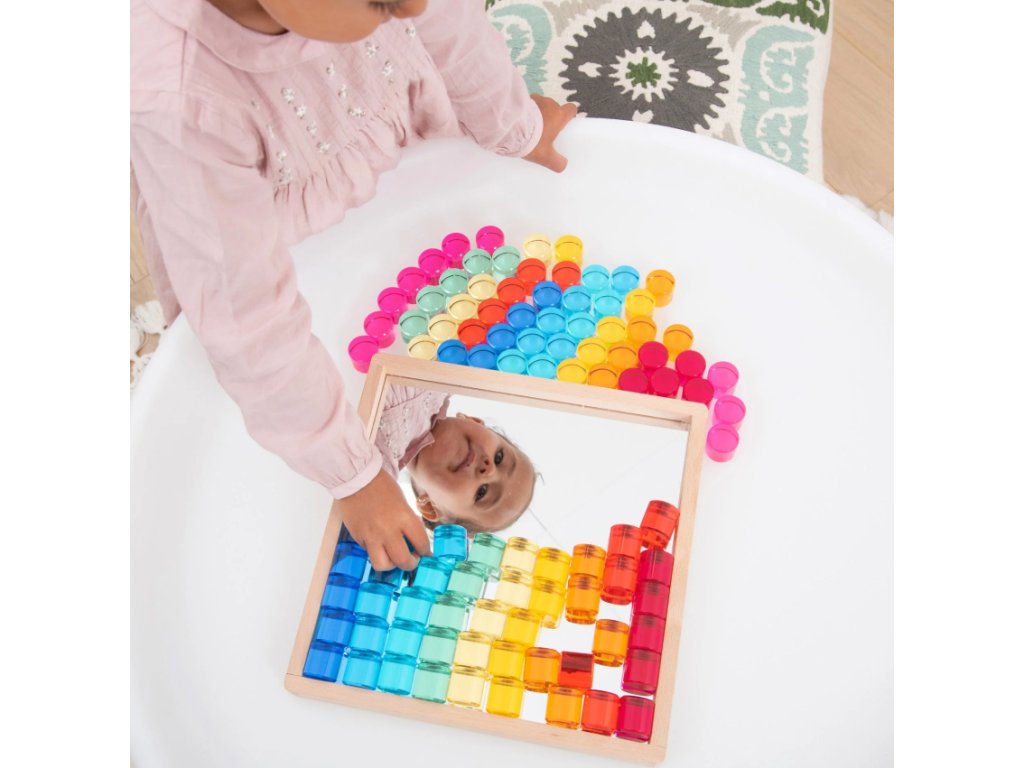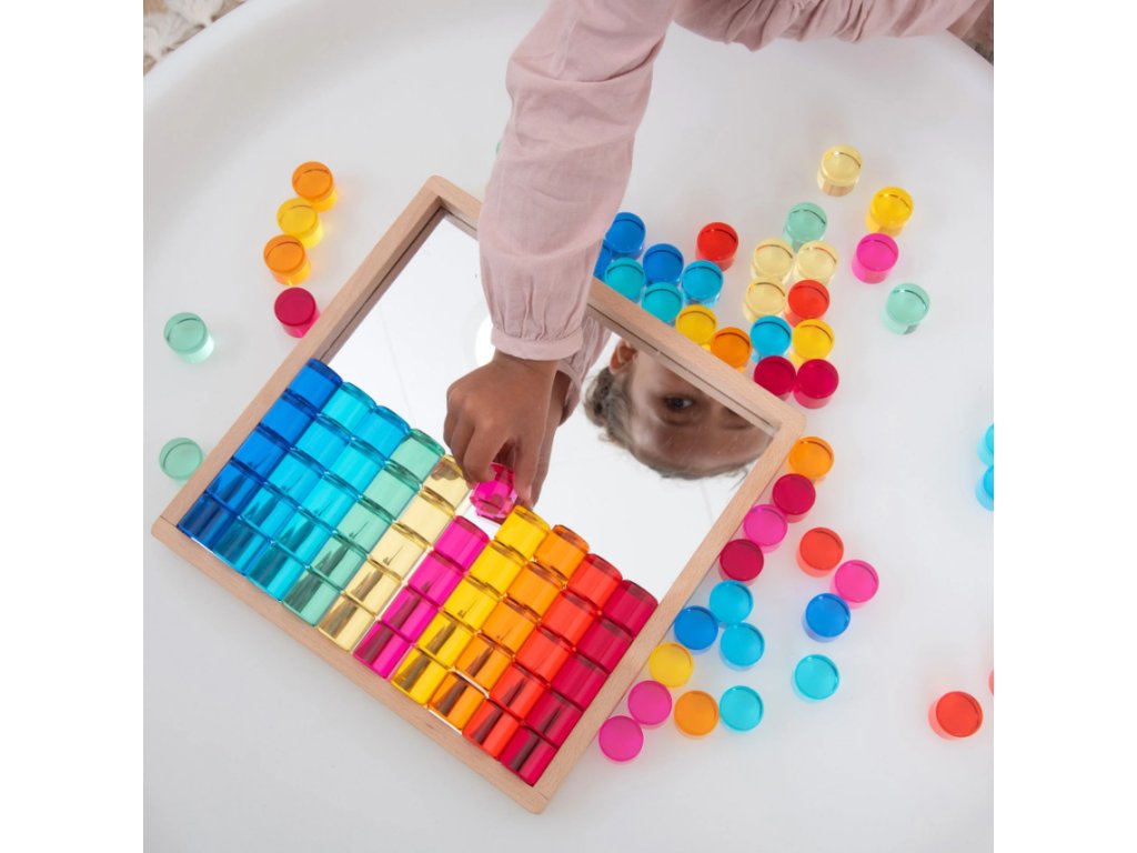 Objevte tuto nádhernou sadu, která je stejně vzdělávací jako okouzlující! Tato sada obsahuje kruhové klenoty v křišťálové barvě v dřevěném podnosu se zrcadlovou základnou. Je to fantastický zdroj pro nápadité učení a hraní.