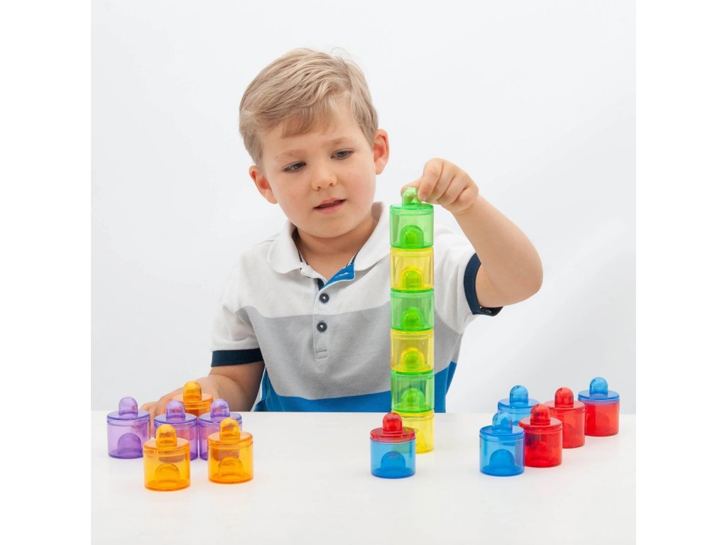Každý pohárek má víko, takže je ideální pro plnění materiály pro senzorické hry, pro míchání barev, přiřazování a stohování. Pomáhá rozvíjet schopnost vašeho dítěte myslet logicky a zlepšit koordinaci ruka-oko. Sada barev ladí s ostatními položkami v řadě TickiT, jako jsou pinzety , které lze použít k umístění malých předmětů do květináčů.