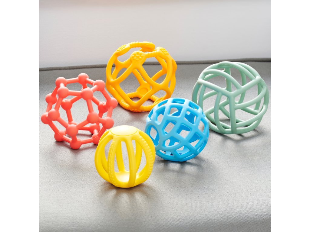 Flexibilní míčky ve tvaru klece v různých velikostech, každý s různými velikostmi otvorů a vzory. Lze je použít k barvení a razítkování, pískování vzorů, hmatovým senzorickým hrám a jako hračku proti stresu.