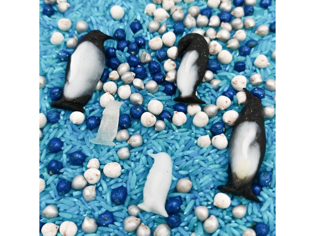 Pryskyřicová tučňáčí rodinka krásně oživí vaše zimní hraní a navodí zimní atmosféru. Děti je mohou hledat v nachystaném smyslovém materiálu, či obtiskávat do modelíny. Využijete je také do adventního kalendáře.
