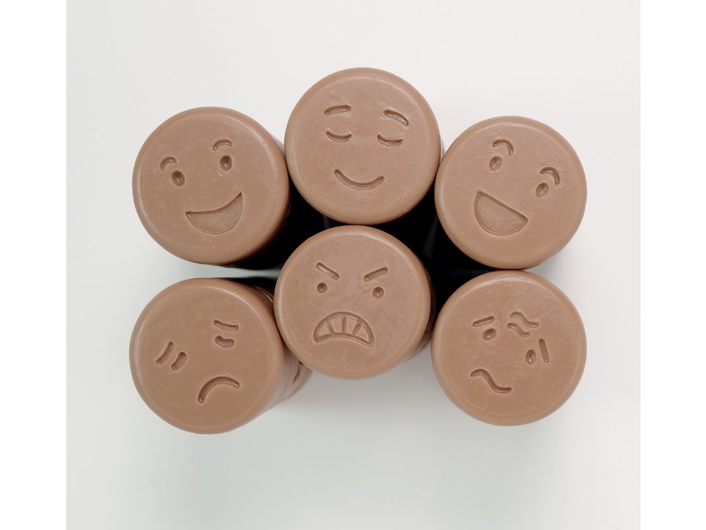 Tyto kreativní válečky od Yellow Door pomohou dětem rozpoznat a mluvit o šesti klíčových emocích: radost, nadšení, smutek, strach, klid a hněv. Zaválejte do modelíny, hlíny nebo písku, abyste vytvořili tělo, a přidejte obličej, abyste dokončili emoce. Každý design poskytne spoustu podnětů, které dětem pomohou vyjádřit a pochopit, jak mohou vypadat jejich tváře a jak se může cítit jejich tělo, když prožívají konkrétní emoci. Co takhle přizpůsobit emoci konkrétní barvě modelíny? Poutavý způsob, jak rozvíjet emocionální slovní zásobu a emoční inteligenci dětí a zároveň procvičovat jemnou motoriku. Každá sada je vyrobena z odolné směsi kamene, která se snadno čistí, a obsahuje šest válečků o rozměrech 72 x 34 mm. Věk 2+.