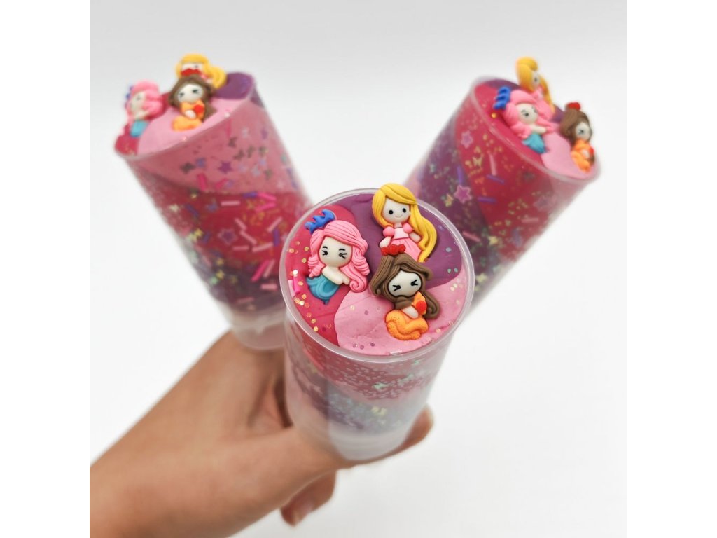 Modelína skrytá ve vysunovací nádobce. Stačí vystrčit a jde se na hru. Tato přináší tříbarevnou modelínu a princezny.
